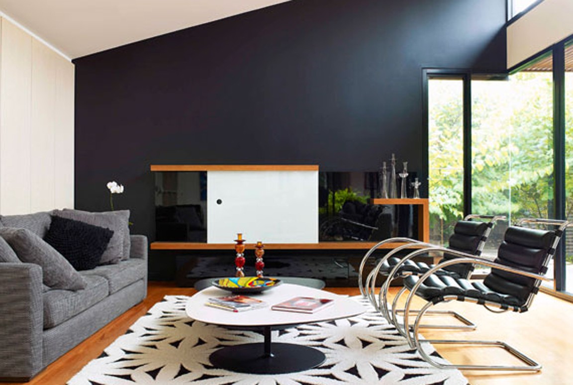 Sneeuwwitte trends in interieurontwerp, die het Scandinavische licht en luchtig principe volgen, worden gevolgd door een nieuw kleurenschema - zwarte muren. Dit werkt vooral grafisch in combinatie met natuurlijke materialen.