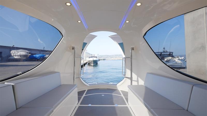 Het interieur is volledig aanpasbaar. Daar kunnen we dan stoelen voor uitkiezen maximaal 12 personen of andere elementen, zoals een keuken of een badkamer. We kunnen ons zelfs een volledig uitgeruste eetkamer voorstellen en genieten van romantische diners op de golven. De ramen zijn voorzien van een speciale beschermende substantie voorkomt dat zonnestralen het interieur binnendringen en verblindde de passagiers. De Jet Capsule heeft zeker ook romantische potentie, maar we zijn er toch vrij zeker van dat hij de gondels van Venetië nooit zal kunnen vervangen.