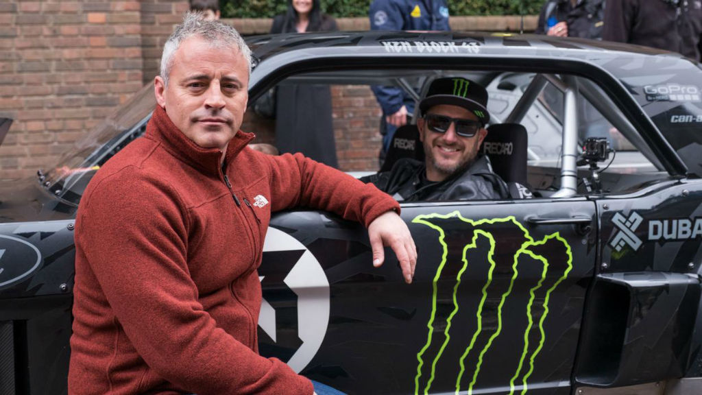 Ken Block, bekend van zijn Gymkhana-racevideo's, bezocht dit keer Londen en nam Top Gear-presentator Matt LeBlanc mee op een rondrit door de stad in zijn 845 pk sterke Hoonicorn Mustang. Zoals verwacht had deze niet veel uitzicht.