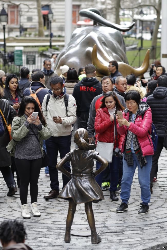 Op Internationale Vrouwendag werd op Wall Street tegenover het beroemde bronzen stierbeeld een bronzen beeld van een meisje opgericht. Het is een symbolische spraakmakende waarschuwing over de macht van vrouwen, die werd uitgebracht door het financiële bedrijf State Street Global Advisors. Het is gemaakt door kunstenares Kristen Visbal.