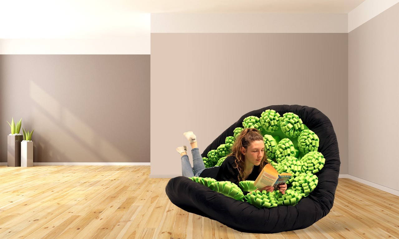 Lullock is een bijzondere bank, gemaakt voor maximaal genot. Net als de zitzak past hij zich aan het lichaam aan, maar in tegenstelling tot gewone stoelen en banken heeft hij een halfronde vorm en wordt hij tot op de grond verlaagd. Het oppervlak van de zitting is uniek, het wordt gevormd door paddestoelbloemen, wat voor een heel bijzondere ervaring zorgt.