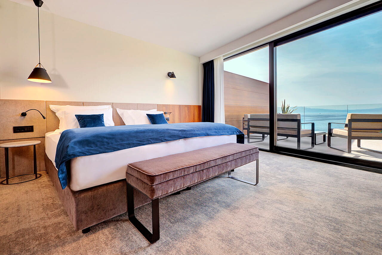 Luxehotel Riva beschikt over 49 modern ingerichte kamers (41 kamers, 3 familiekamers en 5 suites), die een prachtig uitzicht bieden vanaf ruime balkons. Alle kamers zijn uitgerust met kingsize bedden, waardoor u verzekerd bent van de rustgevende slaap die u nodig heeft voor een onvergetelijke vakantie.