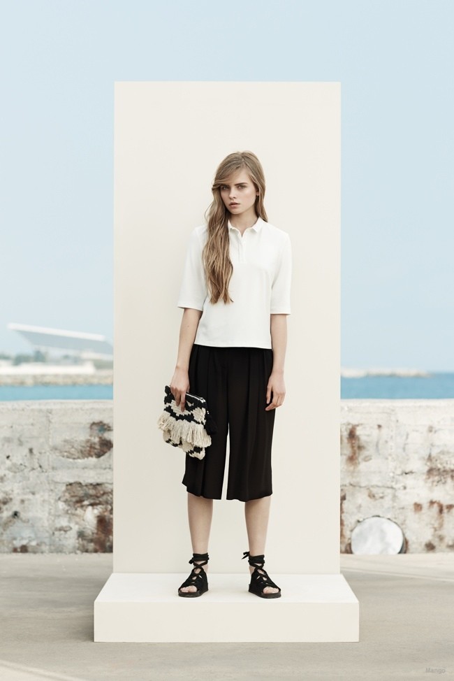 Voor de nieuwe Mango spring/summer 2015 collectie viel de hoofdrol in het lookbook weg model Anna Ewers, die ons de gevoelens en stijlen van de nieuwe collectie laat zien. Van bermuda's tot lange, wijde jassen, minirokjes, spijkerhemden, broeken met wijde pijpen, etnische jurken die doen denken aan muziekfestivals uit het flower power-tijdperk tot nu zwart-wit combinatiesj die spelen met gestreepte patronen en stippen van verschillende dikte. Volgens de voorspelling van Mango staat ons een ontspannen, speels modeseizoen te wachten met een vleugje jaren 70 van de vorige eeuw.