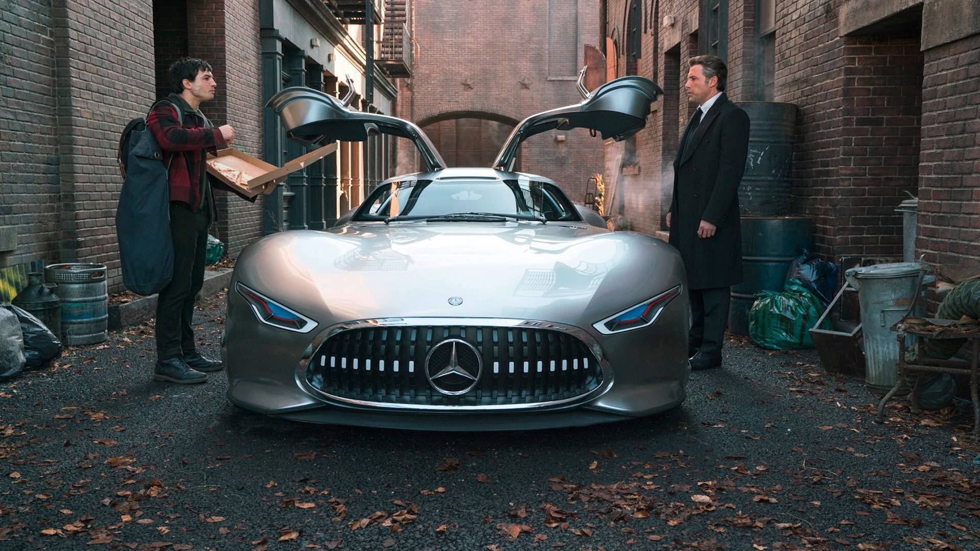 Bruce Wayne respectievelijk Batman bo sedel za volan enega izmed najvznemirljivejših avtomobilov na filmski sceni. V rokah bo držal volan konceptnega Mercedesa-AMG Vision Gran Turismo. Koncept je sicer že iz leta 2013, a je bil takrat razvit zgolj za virtualno vožnjo v računalniški igrici Gran Turismo. Za potrebe snemanja so avtomobil povečali za 10 %, saj so ga morali prilagoditi Batmanovi mišični in visoki postavi. Konceptni model v prvotni izvedbi ni imel notranjosti, ker je niti ni potreboval. To so naredili povsem na novo in je ena izmed boljših Mercedesovih mojstrovin, ki se je kar ne moremo nagledati.