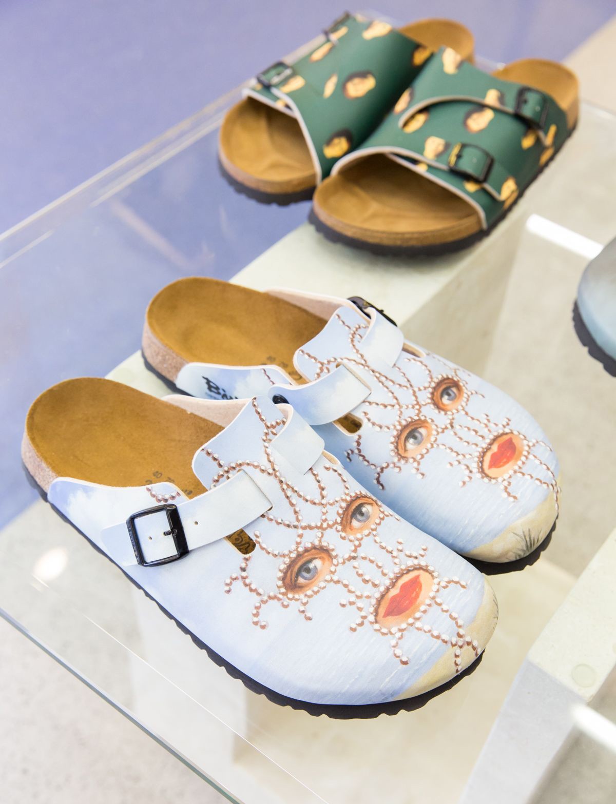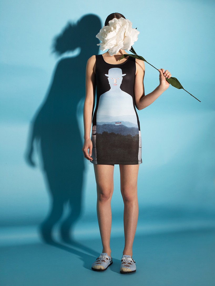 Čudovit nabor vsebuje plavajoči obraz umetnine “Scheherezade” (1950), kozarec vode na dežniku iz “Hegel’s Holiday” (1958 in 1959) ter poljubljajoči par iz “The Lovers” (1928). K sodelovanju so povabili tudi modne znamke Birkenstocks, Bestelwagens En Manolo Blahnik, ki so pomagale oblikovati kolekcijo umetniške obutve.