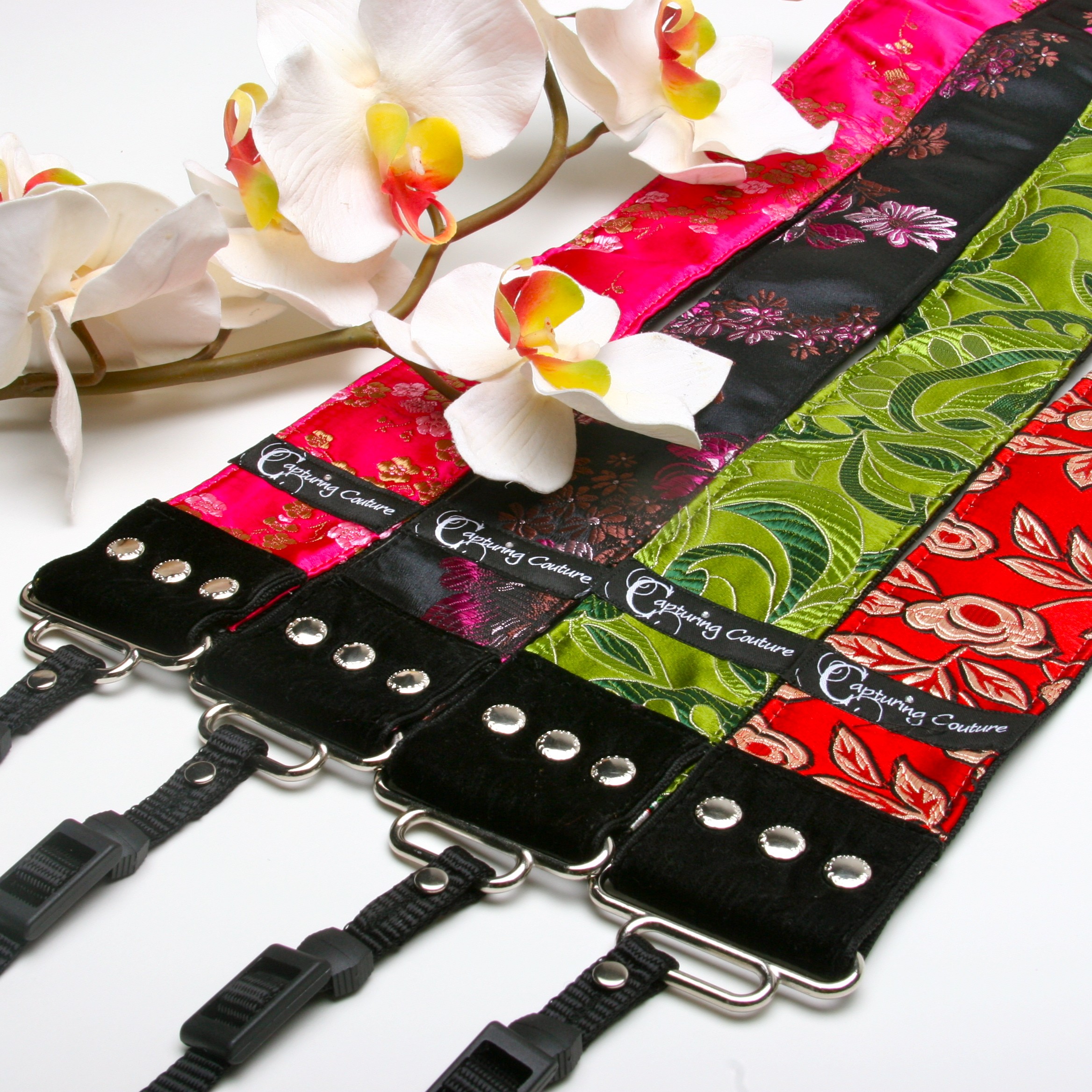 Capturing Couture lastnikom najrazličnejših foto napravic ponuja privlačne naramne in ročne pasove, med katerimi izstopa gosposka in chic kolekcija Boho, rožnata Tropical, glamurozni in brezčasni stil najdemo v kolekciji Tapestry, ljubitelji narave in živalic se navdušujemo tudi nad Dieren pasovi, Penelope prinaša sveže barve in vzorce, Organza navdušuje z elegantnimi cvetličnimi dodatki, ljubki pasovi Bloom Theory v pastelnih barvah s pentljami pa očarajo vse nežne dušice. Nekoliko bolj resni, toda preprosti pasovi se seveda najdejo tudi za našo močnejšo polovico, ki med karirastimi in črtastimi dodatki zagotovo najde kaj zase.
