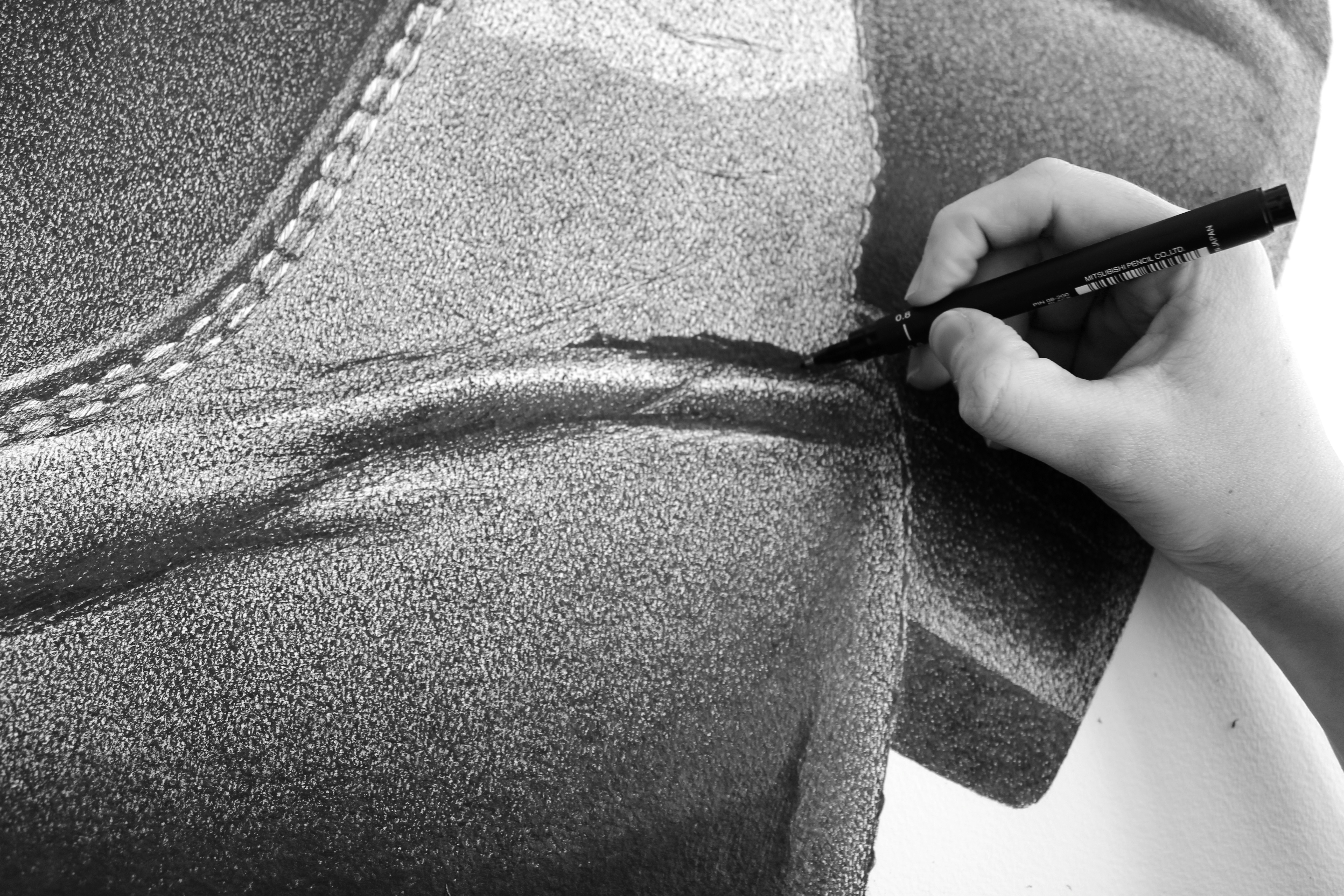 Enkel uitgerust met zwarte pen en papier levert de Australische kunstenaar CJ Hendry prachtige zwart-witafbeeldingen af van alledaagse en modeartikelen, zoals een Hermès-sjaal en een paardenhoofd bedrukt met het Louis Vuitton-logo. Ze heeft haar techniek zo geperfectioneerd dat haar creaties benijdenswaardig echt lijken.