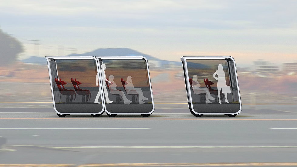 Volgende, kot so ga poimenovali, je sistem pametnega električnega mestnega prevoza.Gre za samovozeča modularna vozila, ki pa se lahko tudi združijo in delujejo po principu avtobusa. V njih bi lahko potovalo do 10 ljudi, 4 stoje in 6 sede. Delovala naj bi po principu een taxi služb, saj boste prek mobilne aplikacije modulu sporočili svojo lokacijo ter vtipkali želeno destinacijo. Ni pa Next rešitev samo za transport ljudi. Tudi kurirske službe bodo tako lahko učinkoviteje opravljale svoje storitve. Pa tudi, če si boste med vožnjo zaželeli kave za na pot, se bo do vašega modula pripeljal npr. Starbucksov Next in vam z njo postregel. Ni ga čez ‘komot’!