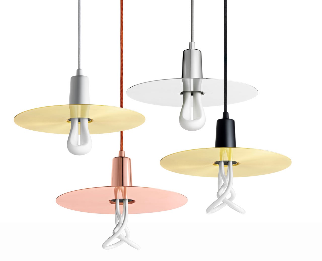 Plumen Bedrijf, dat beschikt over permanente collecties in musea zoals MoMA, het Art Institute of Chicago, het Victoria & Albert Museum en het Helsinki Design Museum, met zijn nieuwe collectie modulaire hanglampen bewijst opnieuw dat het een van de leiders is in de ontwikkeling van innovatieve producten die zorgen voor een bijzondere lichtbeleving. Lampen kunnen gemaakt worden van zwart, messing, chroom, koper en wit snoeren van gloeilampen En platte lampenkappenik, die samen vormen elegante woonaccessoires, speels licht reflecterend.