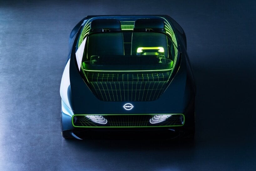 Max-uit, aangedreven door een volledig solid-state batterij, belooft een kijkje in de toekomst van elektrische mobiliteit van Nissan. Het bedrijf slaagde erin de batterij te verkleinen tot het formaat van een lithium-ionbatterij, waardoor deze compatibel was met het strakke ontwerp Max-uit en andere toekomstige volledig elektrische voertuigen. De buitenkant van de auto heeft een schuine vorm die taps toeloopt in een voorkant met brede lippen die de omgeving weerspiegelt met een glanzend, glasachtig oppervlak.