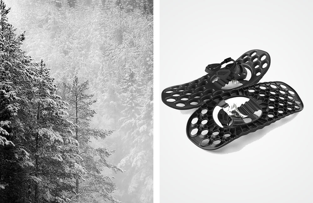 Structuur sneeuwschoenen en het ontwerp zelf is gemaakt op basis van een speciale studie en helpt ervoor te zorgen dat de gewichtsverdeling op het sneeuwoppervlak zo gelijkmatig mogelijk is. Lichte constructie, flexibiliteit, comfortabele installatie en een reeks functies sneeuwschoenen ze dragen bij aan een extreem licht gevoel van lopen op terrein waar dergelijk lopen anders niet mogelijk is.