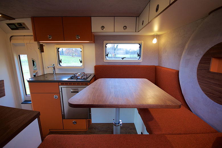Orangework Lennson 3C is gebaseerd op Mercedes-Benzu G320. Het drijft hem turbinski 6-valjni motor z 220 konjskimi močmi. Za prestavljanje skrbi Automatische transmissie met 7 versnellingen, s tem pa je vožnja v vseh pogojih zacht En vloeistof. Seveda so ob vseh predelavah in dodatkih ohranili vse terenske zmožnosti Mercedesa G. Dolžina 5,7 metra je povsem obvladljiva, a jim je pri Orankeworku vseeno v kabino uspelo zapakirati popolnoma opremljeno kuhinjo, de badkamer, prostorno ležišče En jedilno-bivanjski kot. Med drugim je dovolj prostora še za 100 litrov sveže vode, 6-litrski grelec tople vode, koelkast in še kaj. Že tudi brez te rumene barve je avtodom indrukwekkend in zagotovo eden od najbolj privlačnih, na katere smo naleteli do zdaj. Zdaj pa samo še za volan in novim dogodivščinam naproti.