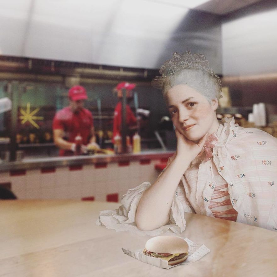 We hebben de samensmelting van traditioneel en modern al eerder gezien, maar deze fotomontages, waarin mensen uit klassieke schilderkunst en moderne ruimtes worden gecombineerd, zullen je doen glimlachen, omdat ze als gegoten zijn.