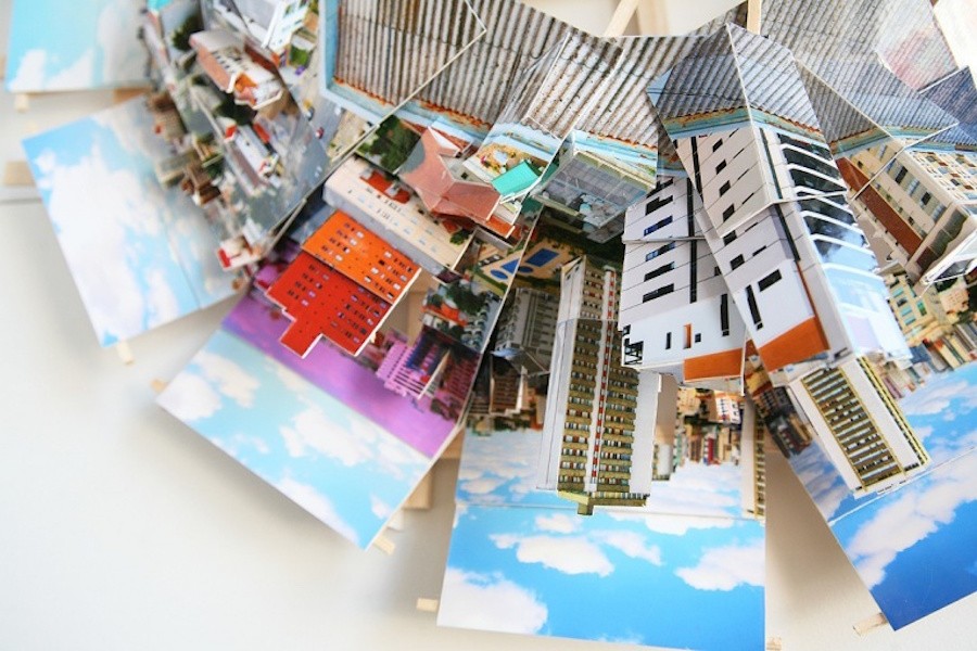 Isidro Blasco je iz številnih fotografij mest, kot so Sydney, Madrid, New York, Helsinki, Curitiba in Alicante, posnetih na različnih lokacijah, ustvaril nenavadne panoramske instalacije, lepljenke prizorov, ki jih je moral za popolno panoramo posneti tudi na več kot 40 lokacijah.