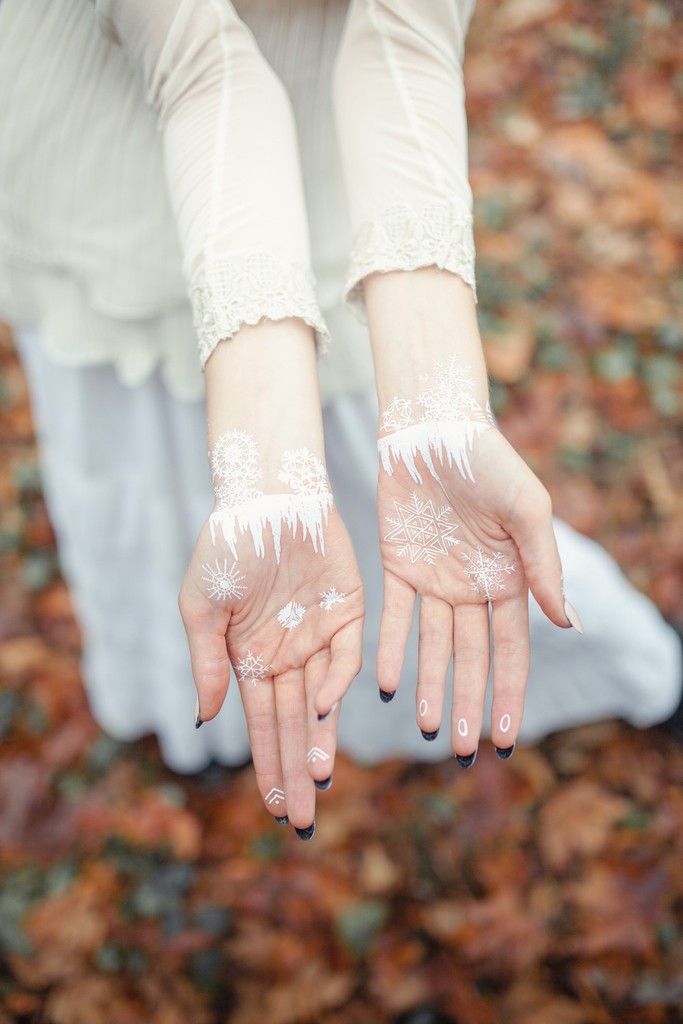 Als je dacht dat tijdelijke tatoeages alleen maar iets voor de zomer waren, zou je je ernstig vergissen. Hier zijn sprookjesachtige tijdelijke tattoos die op sneeuwvlokken lijken en perfect zijn voor iedereen die zich tijdens de winter wil transformeren in een Frozen-prinses.