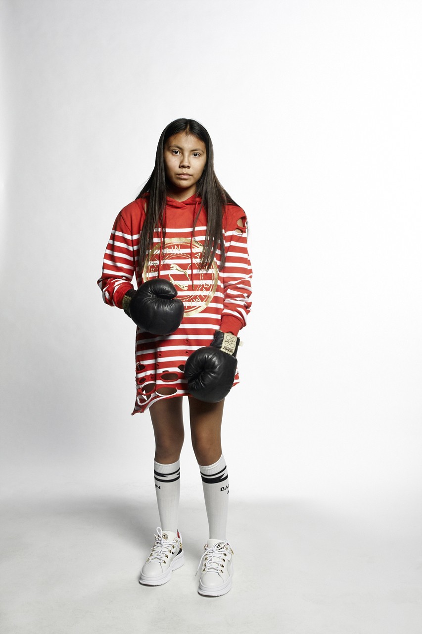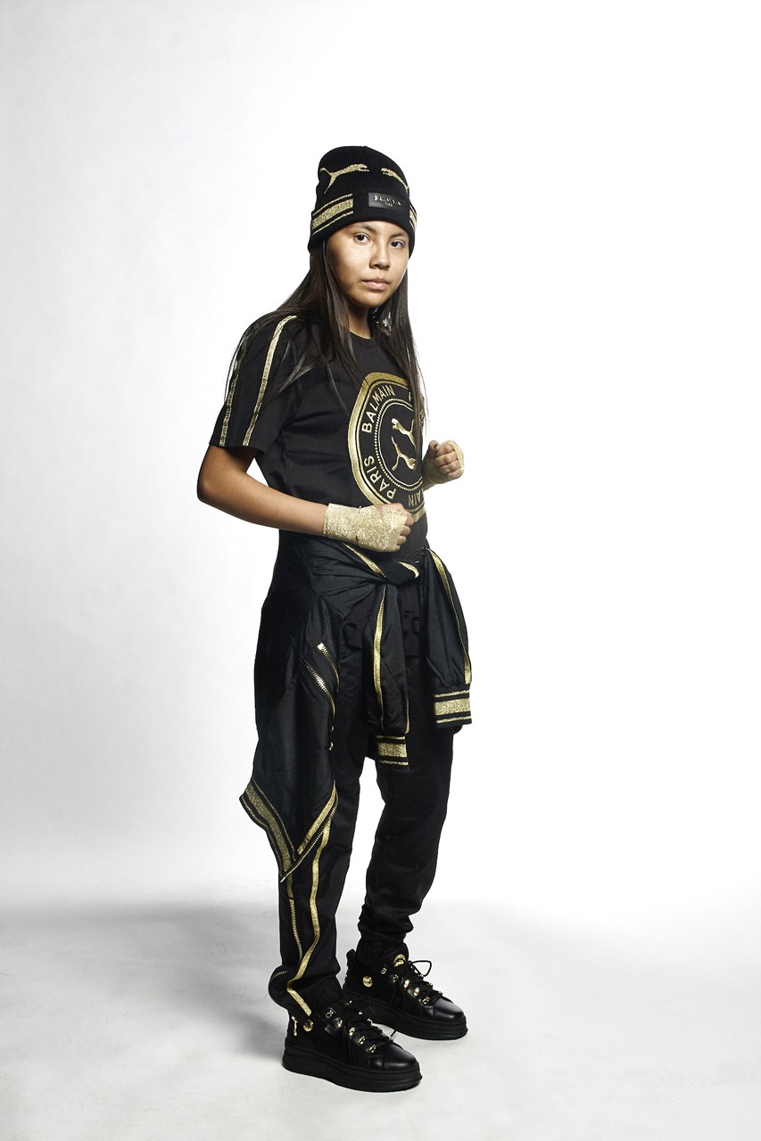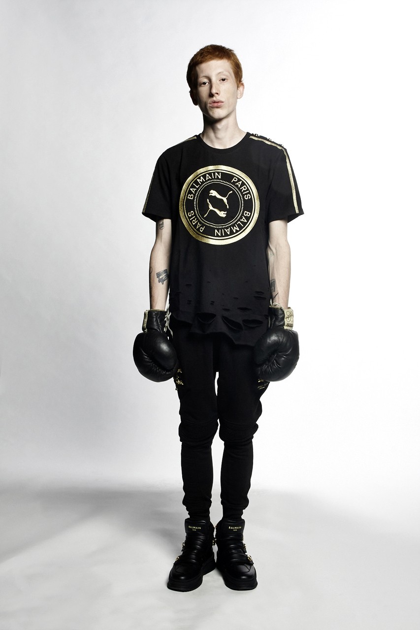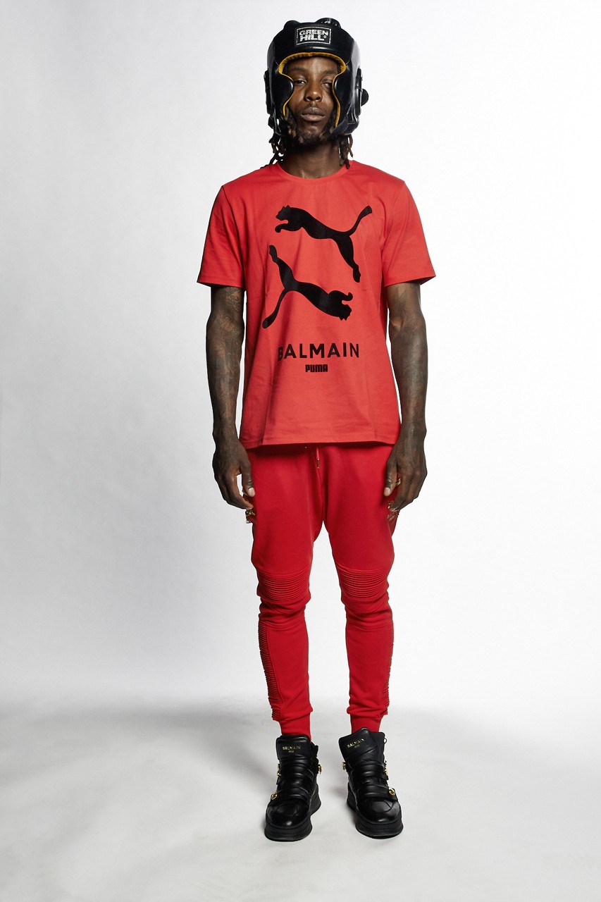Verzameling PUMA x Balmain het combineert sport en mode, en de stukken zijn geïnspireerd boksen en Parijse couture. Zo omvat de collectie naast de tops en bottoms van sportkleding ook bh’s, boxershorts en sneakers in een perfect kleurenpalet met gouden accenten.