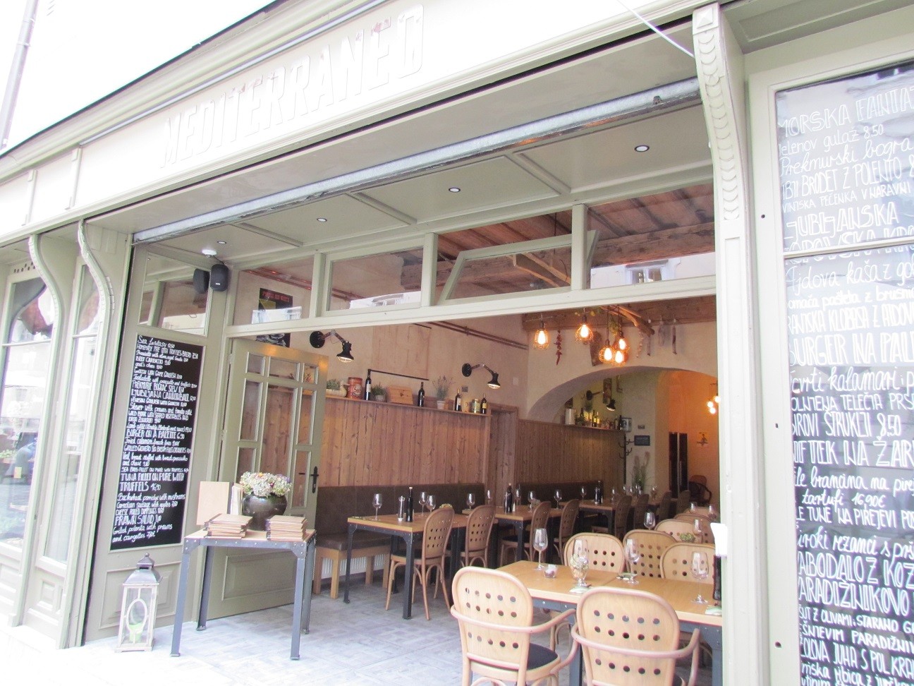 Cafébar en restaurant Middellandse Zee het is als mediterraan eten De nieuwste aanwinst van Ljubljana, die een stukje Middellandse Zee naar het hart van Slovenië heeft gebracht voor de inwoners van Ljubljana en toeristen. Dit zie je niet alleen terug in de ambiance, maar ook op het bord dat je voorgeschoteld krijgt. met veel typische visgerechten, maar ze brengen je ook verschillende pasta, die naast zeevruchten de rode draad in het aanbod vormen.