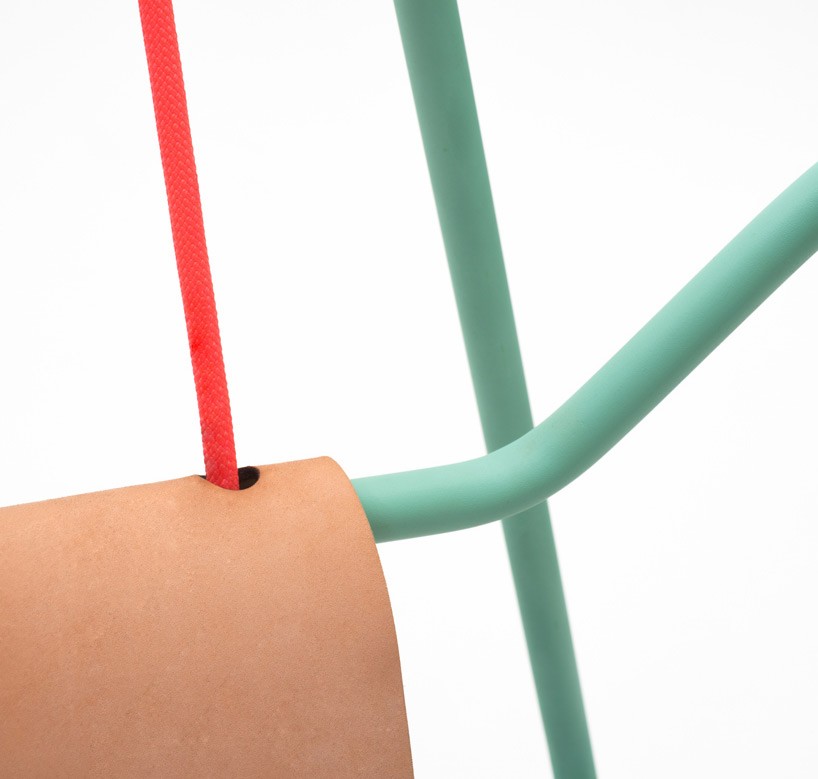 “Rocking Chair” je ultimativno orodje za medgeneracijsko zabavo, igriva kombinacija otroške gugalnice in babičinega gugalnika, ki nas nežno ziblje in igrivo guga. Minimalistično oblikovan pohištveni kos, ki govori dva jezika – gugalnice in gugalnika – je sestavljen le iz bistvenega – železnega okvirja, usnjenega sedeža in vrvi, brez vijakov in nepotrebnih zunanjih elementov. Lahkoten in mobilen, je pohištveni kos “Rocking Chair”, ki ga odlikujejo čiste linije in živahne barve, pravi nomad, ki nežno ziba, ko to najbolj potrebujemo.