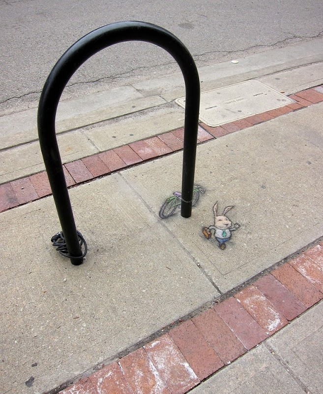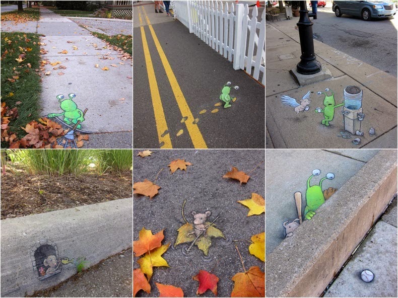 Sinds 2001 heeft kunstenaar David Zinn talloze krijtstraatillustraties gemaakt op de trottoirs van zijn geboorteplaats Ann Arbor.