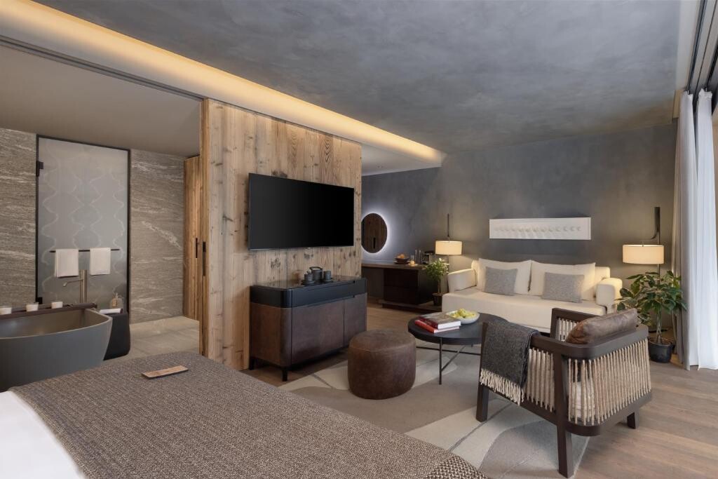 Het hotel heeft een scala aan kamers en suites die zijn ingericht in een moderne alpine stijl en een scala aan luxe diensten bieden. Elke kamer heeft een open haard en een eigen balkon met een prachtig uitzicht op de omliggende bergen. De appartementen hebben ook een apart woongedeelte en een volledig uitgeruste keuken, waardoor ze ideaal zijn voor gezinnen of gasten die langer blijven.