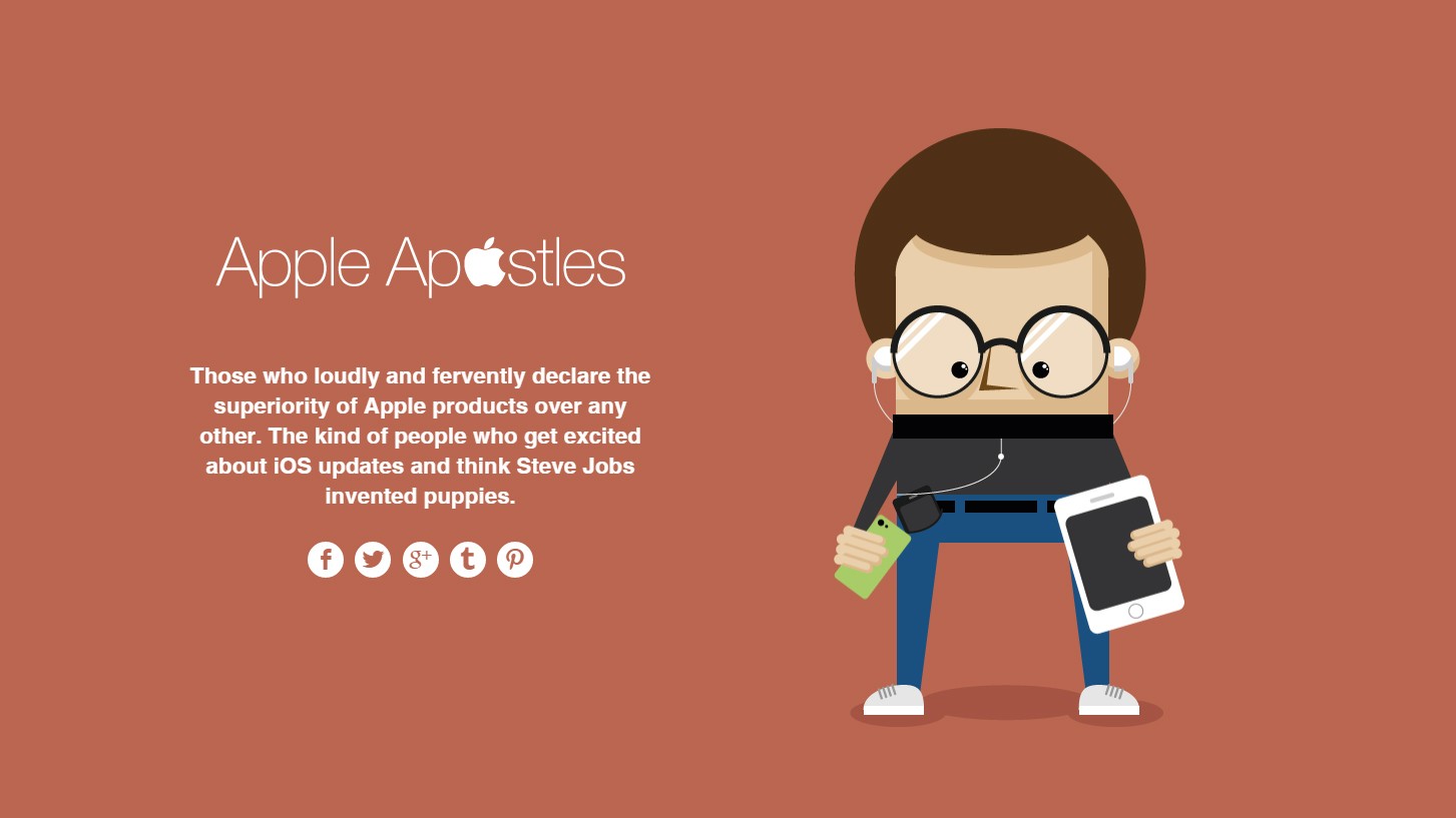 Kakšen “neumen” uporabnik pa smo mi? Morda apostol Appla, ki sveto verjamemo v Apple in v to, da je Steve Jobs izumil tudi ljubke kužke? Smo morda “Selfie-Centered” in vsak kraj je priložnost za nov selfie? Spadamo med zagnane sovražnike Appla? Smo kralj interneta z več kot tisoč virtulanimi prijatelji medtem pa živimo doma in spimo z medvedkom? Ne poznamo okrajšav lol, roflmao En brb? Igramo vse mogoče igrice? Ne vemo, da lahko namesto enega dolgega in slabo berljivega sporočila pošljemo več krajših? Ali pa smo eden/ena tistih, ki čas s prijatelji preživi na Facebooku in Youtubu?