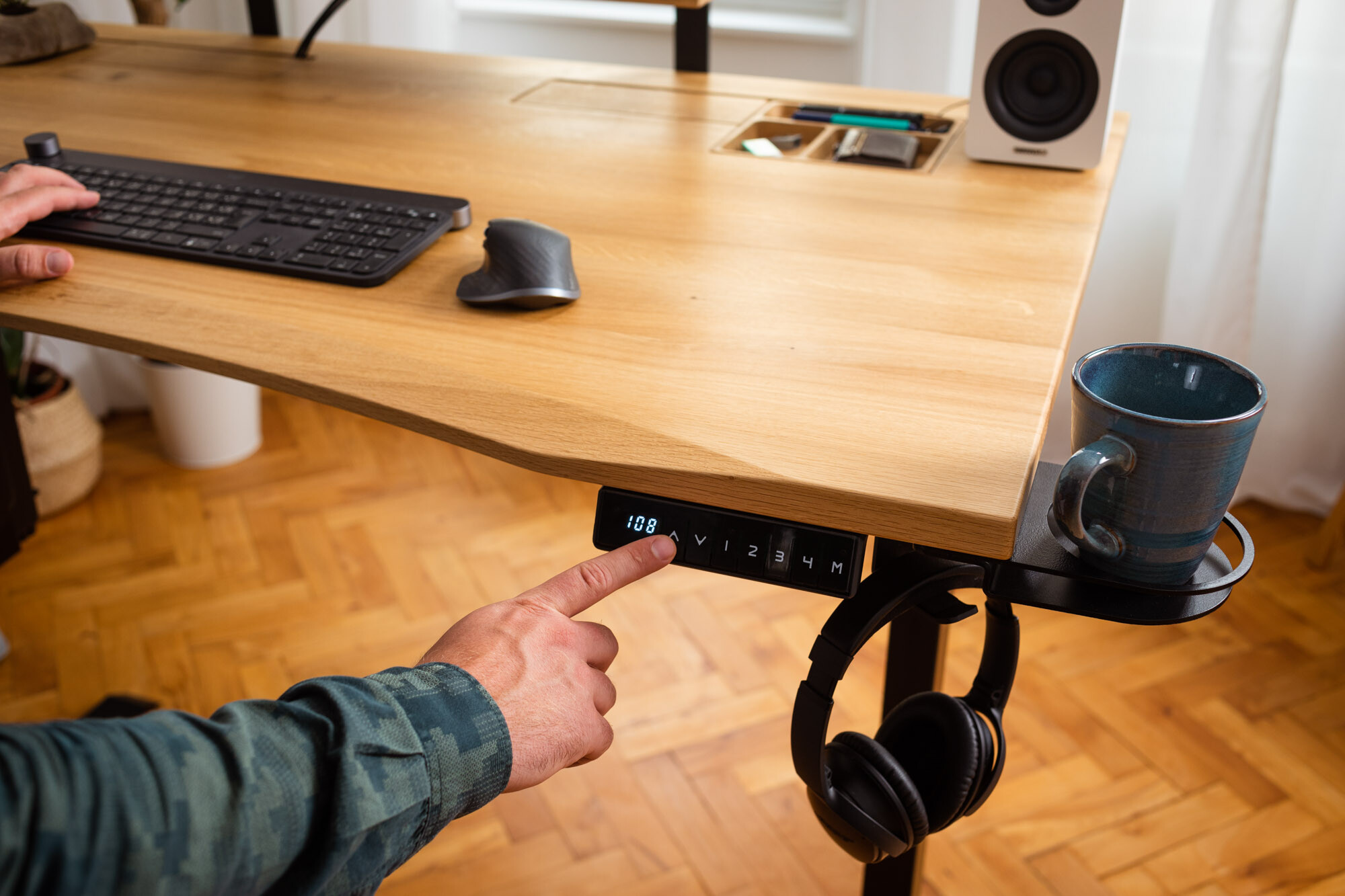 Een opvallende eigenschap ErgoHide is zijn flexibele vorm. Kies voor uw tafel tussen massief eikenhout of "engineered materials" en kies zo een tafelblad dat aan uw wensen voldoet. Met drie verschillende werkbladen voor massief hout en MDF (Medium Density Fibreboard) opties, kunt u een werkruimte creëren die uw stijl en voorkeuren weerspiegelt. Maar met het merk EgoHide stopten ze daar niet. Ze maken ook een tafel voor u, precies volgens uw maten. Gewoon uw wensen invoeren in de configurator!