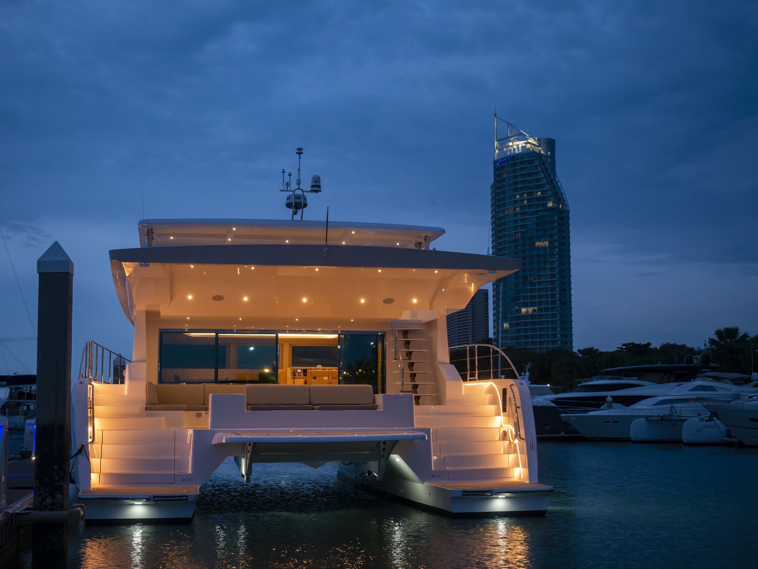Silent 60 kan bogen op thermisch de pomp, waardoor de tijd die op de catamaran wordt doorgebracht, ongeacht het seizoen, altijd aangenaam is. De thermisch geïsoleerde behuizing helpt het elektriciteitsverbruik te verminderen. Met de Silent 60 kunt u op snelheid cruisen 6-8 knopen, en indien nodig kan het ook snel bewegen 20 knopen. De koe heeft ook een zonne-elektrisch systeem voor vers drinkwater, waardoor gasten geen dorst zullen krijgen.