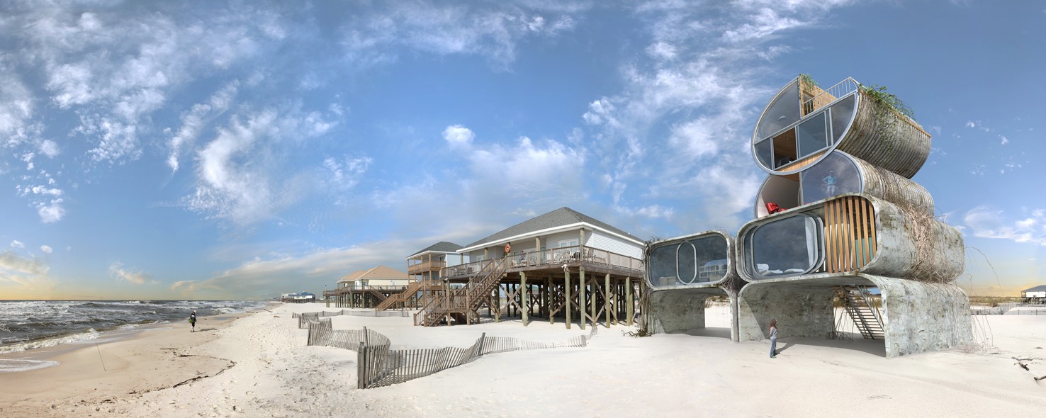 Pri tem je naletel na Dauphne Island v Mehiškemu zalivu, nenehni tarči uničujočih hurikanov. Osupnila ga je neomajna volja tamkajšnjih prebivalcev po vedno novih začetkih kljub številnim opustošenjem. To ga je spodbudilo, da je s pomočjo fotografske manipulacije oblikoval svojo vizijo trajnostnih konstrukcij, nekakšne surrealne futuristične utrdbe, narejene iz odpornejšega železa in betona.