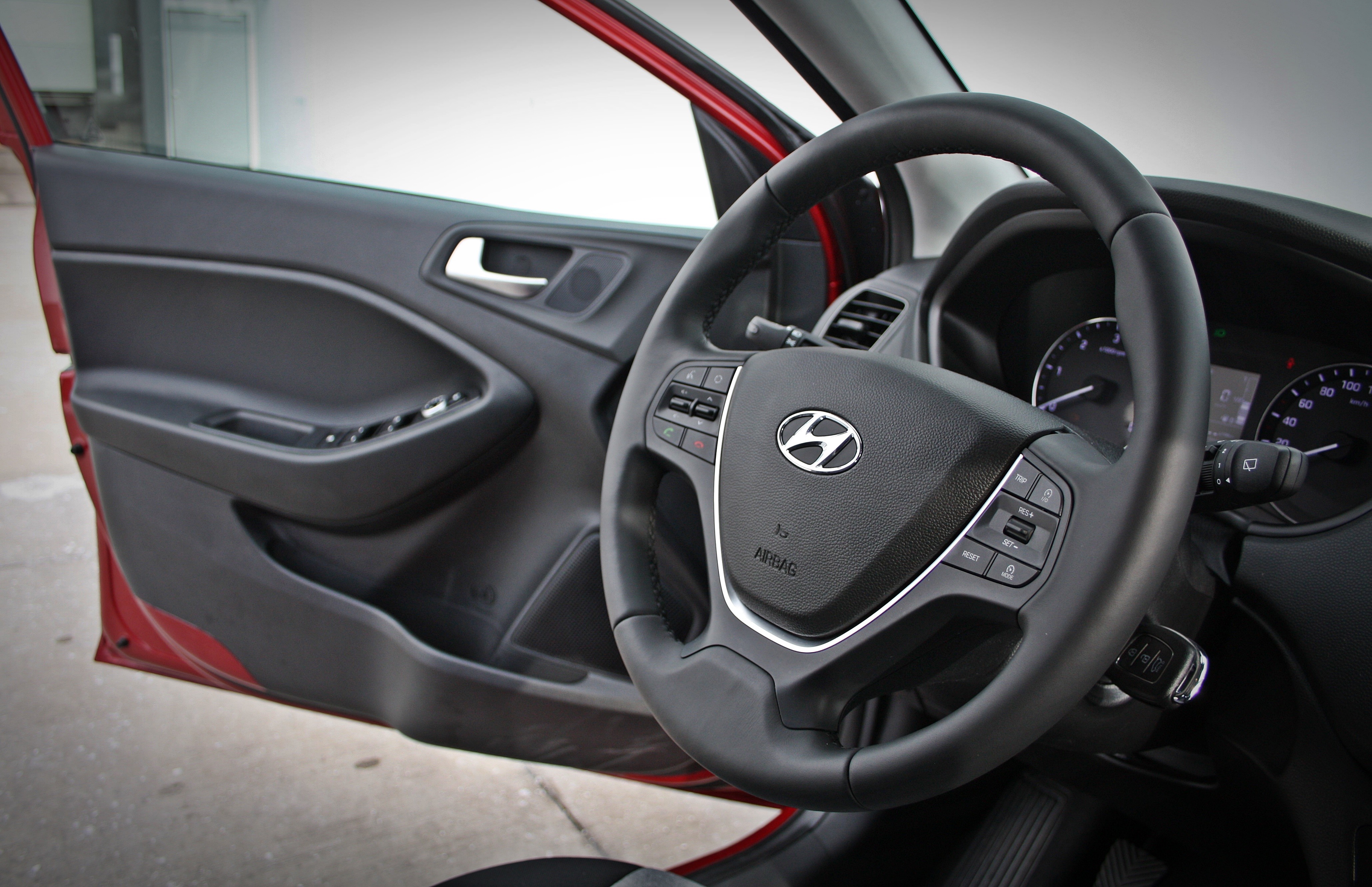 Notranjost, prav tako kot zunanja podoba, pomeni podobno rast v primerjavi s predhodnim i20, saj so izgled armaturne plošče, stikal, volanskega obroča in še česa svetlobna leta tistemu pred tem. Sredinska konzola glede na segment preseneti s svojo zajetnostjo (beri: širino), prostora pa je tudi, ko na prednjih sedežih sedita dva odrasla mošk,a vedno dovolj tudi v predelu ramen. Če avto ne bi pogledali preden bi sedli vanj, bi zagotovo gedachte, Ja sedite v avtu C-segmenta, če ne bi pogledali nazaj pa bi kdo znal reči tudi še kaj več, kot to.