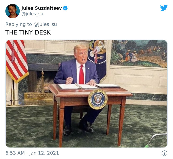 Ne glede na to, kaj se bo v teh dneh dogajalo z ameriških predsednikom Donald Trump (kakšen bo rezultat ustavne obtožbe), se njegov čas na položaju izteka. Da bi povzel njegov mandat, je Jules Suzdaltsev na Twitterju povabil ljudi, naj si vzamejo trenutek, da se spomnijo nekaterih “najbolj čudnih in neumnih” stvari, ki jih je Trump storil v svojem mandatu. Od metanja papirnatih brisač v množico po uničujočem orkanu do salutiranja severnokorejskemu general: Suzdaltsev je sestavil izpopolnjen seznam “dosežkov”.