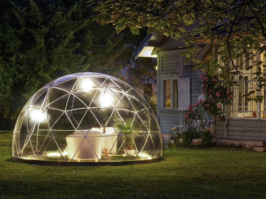 De Tuiniglo 360 is een geodetische koepel voor de tuin waar weinig tuinaccessoires tegen kunnen concurreren. En dan bedoelen we niet stokken, lantaarns etc., maar een zwembad, een basketbalveld, een gastenverblijf,... De multifunctionele ooit-transparante-eens-niet-koepel kan een wintertuin, een overkapping, een kinderhuis, serre, tuinhuisje, ... mogelijkheden de toepassingen worden alleen beperkt door uw verbeelding. Het is een praktisch stukje moderne kunst waar iedere tuin naar verlangt en, al wist jij het tot nu toe, jij ook.