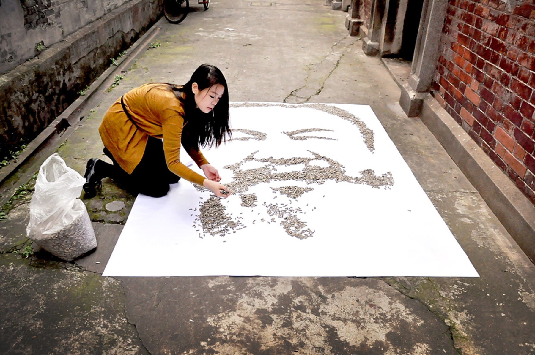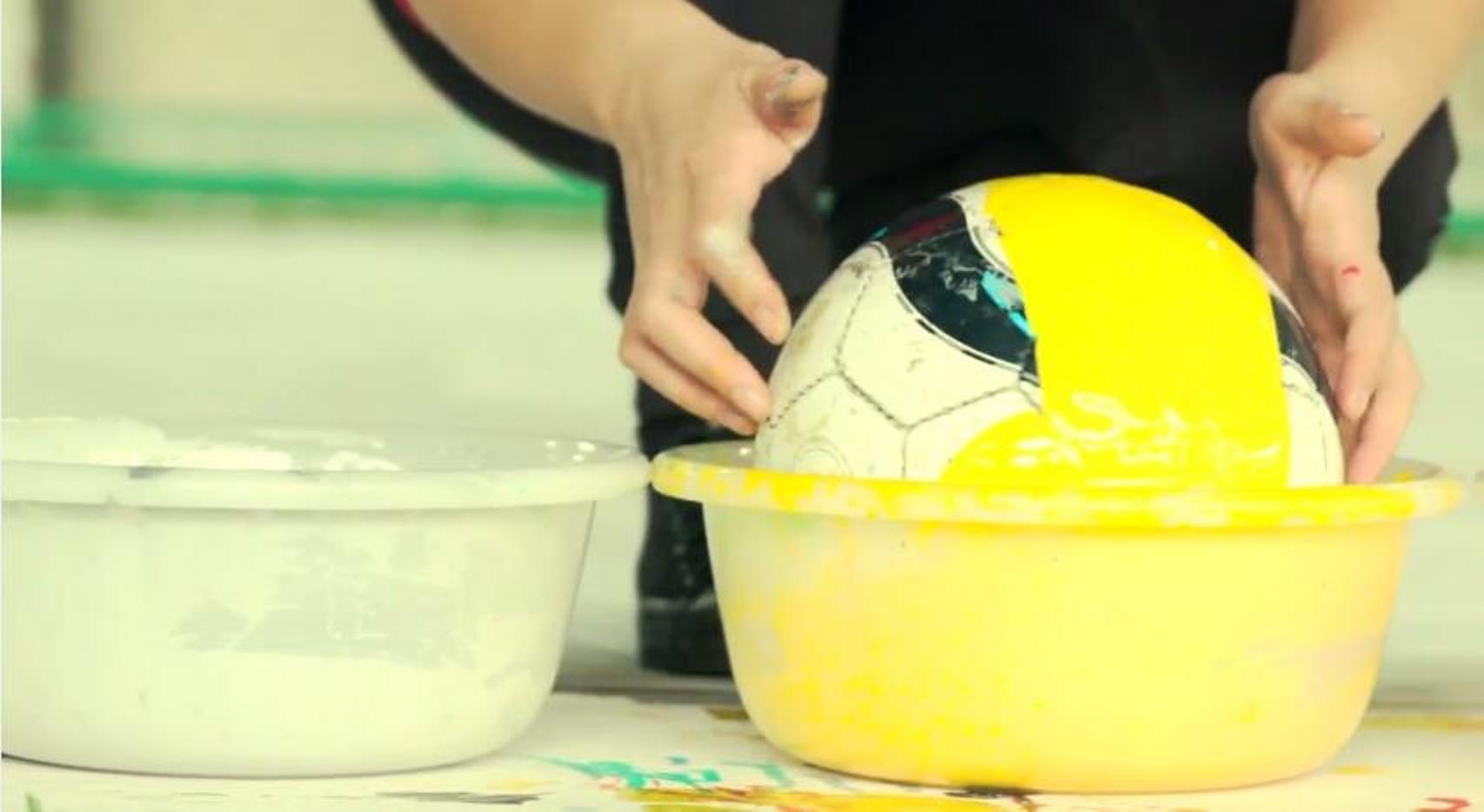 Tunnel, dry sheet, Oxford...voetbaltermen voor trucs met de bal die bijna artistieke vaardigheden van de voetballer vereisen. Schilder Hong Yi, die graag schildert maar nooit met een penseel, nam balkunst letterlijk.