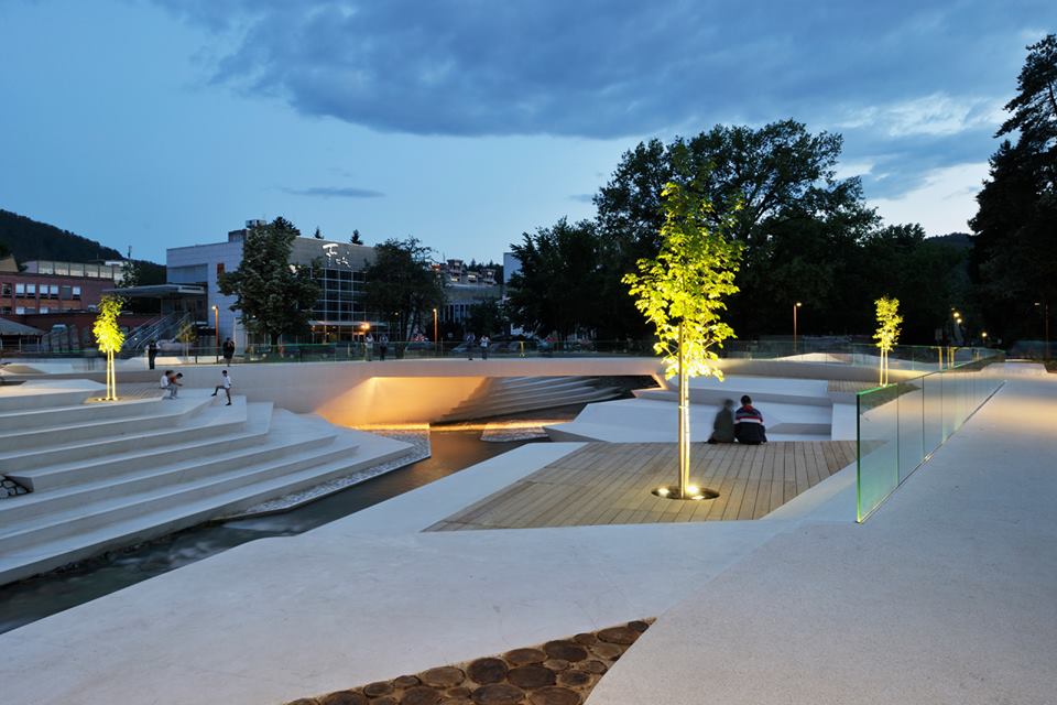 In Velenje, de jongste Sloveense stad, is onlangs de renovatie van de stadspromenade voltooid. Een kronkelend pad, een nieuwe moderne brug, een interessante garage en witte trappen die naar de rivier leiden, hebben de stad frisheid en een nieuwe plek voor gezelligheid gebracht.