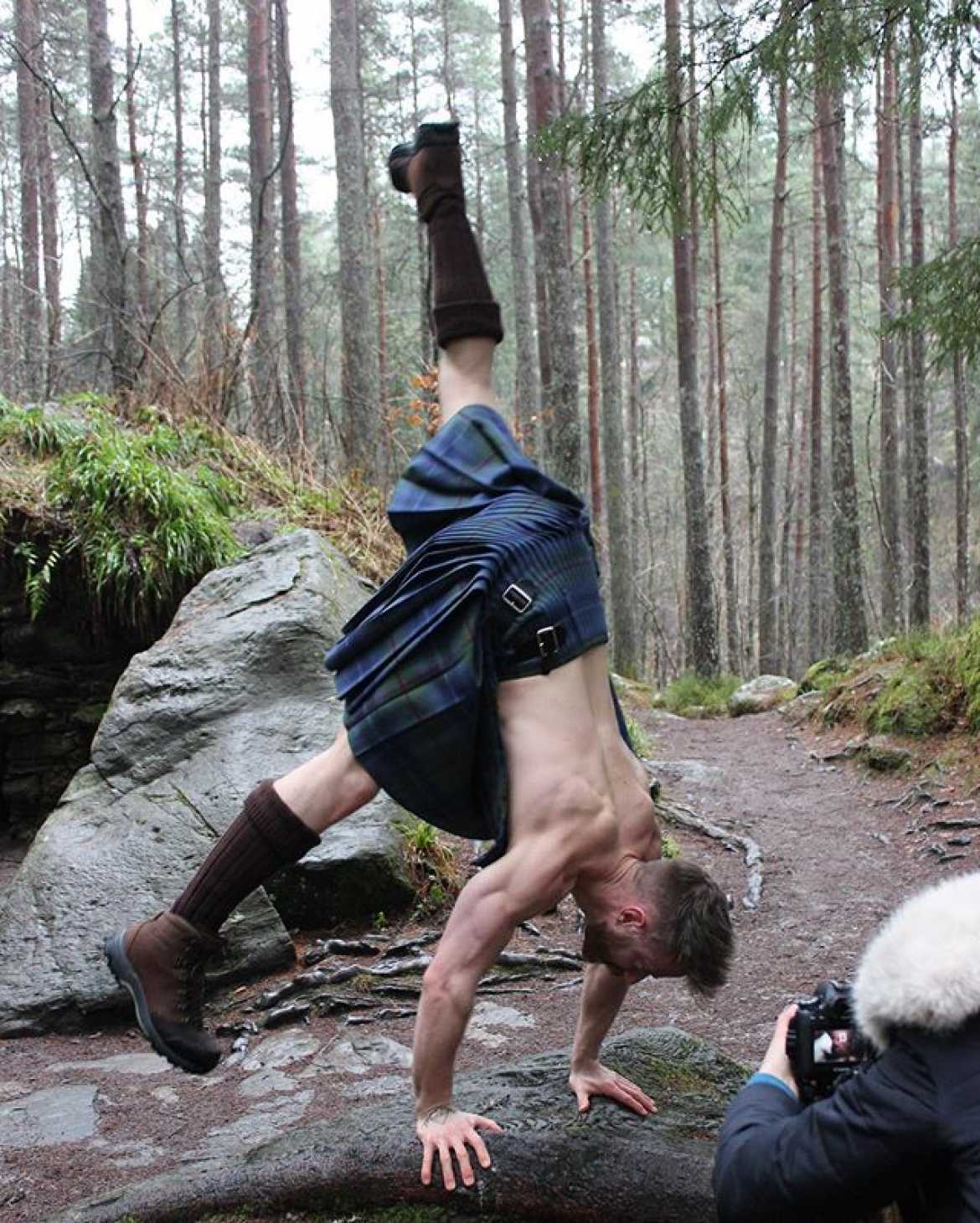 Običajno na tovrstnih posnetkih spremljamo brhka dekleta in moške v pajkicah ali ohlapnih oblačilih, toda to ni običajen posnetek. Mišičasta moška – joga inštruktor Finlay in njegov učenec Tristan – namreč ”jogirata” zgolj v škotskih narodnih nošah in kot veleva tradicija, pod krilom ne nosita ničesar. Koliko razkrijeta, preveri v zgornjem posnetku.