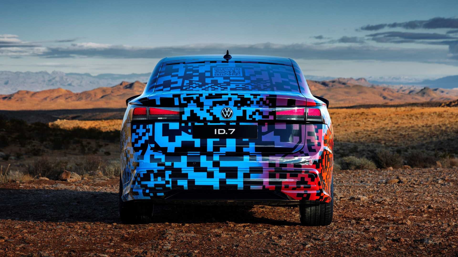 De zogenaamde digitale camouflagekleur zal niet beschikbaar zijn op de productieversie van de ID.7. De kleur valt op door de zware toepassing, op sommige plekken ook 40 lagen, op 22 steden maar onder de kleur zitten geëlektrificeerde punten die een echte lichtshow oproepen. Volkswagen ID.7 komt ook op de Europese markt, en met een volle accu moet er rondgereden worden 700 kilometer een heel eind. Meer technische gegevens zullen dichter bij de komst van de ID.7 op de markt bekend zijn.
