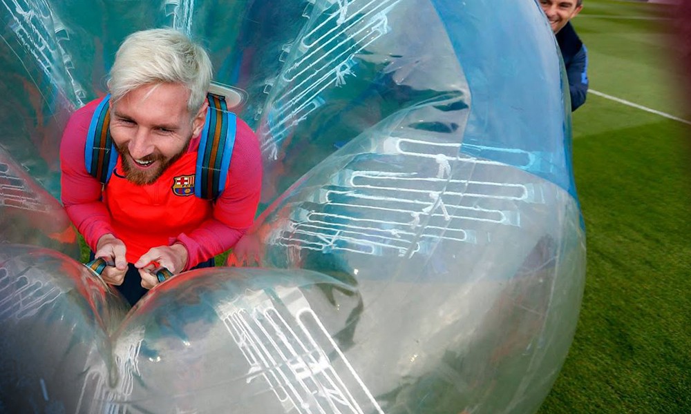 Toen Lionel Messi, Luise Suarez en de rest van voetbalgigant FC Barcelona het voetbalveld van de St. George Park (Newport, Engeland), daar wachtte hen een ongewoon schouwspel. Naast voetballen lagen er ook loopballen (deze body zorbis) op de green voor hen klaar. Coach Luis Enrique bereidde een heel bijzondere training voor hen voor en de spelers vermaakten zich als kleine kinderen.