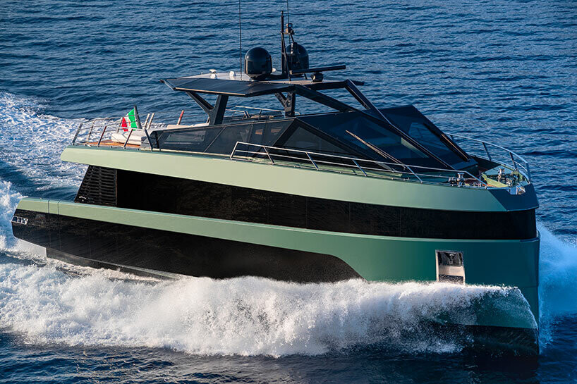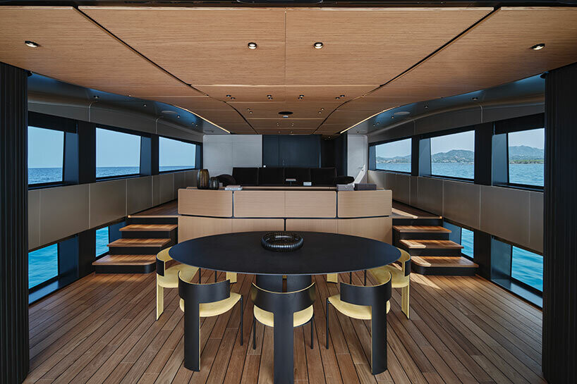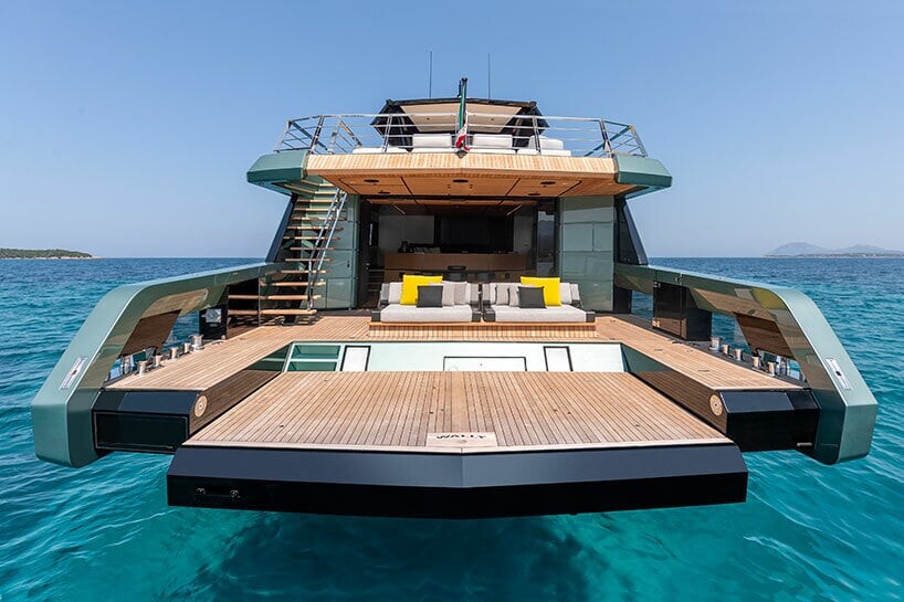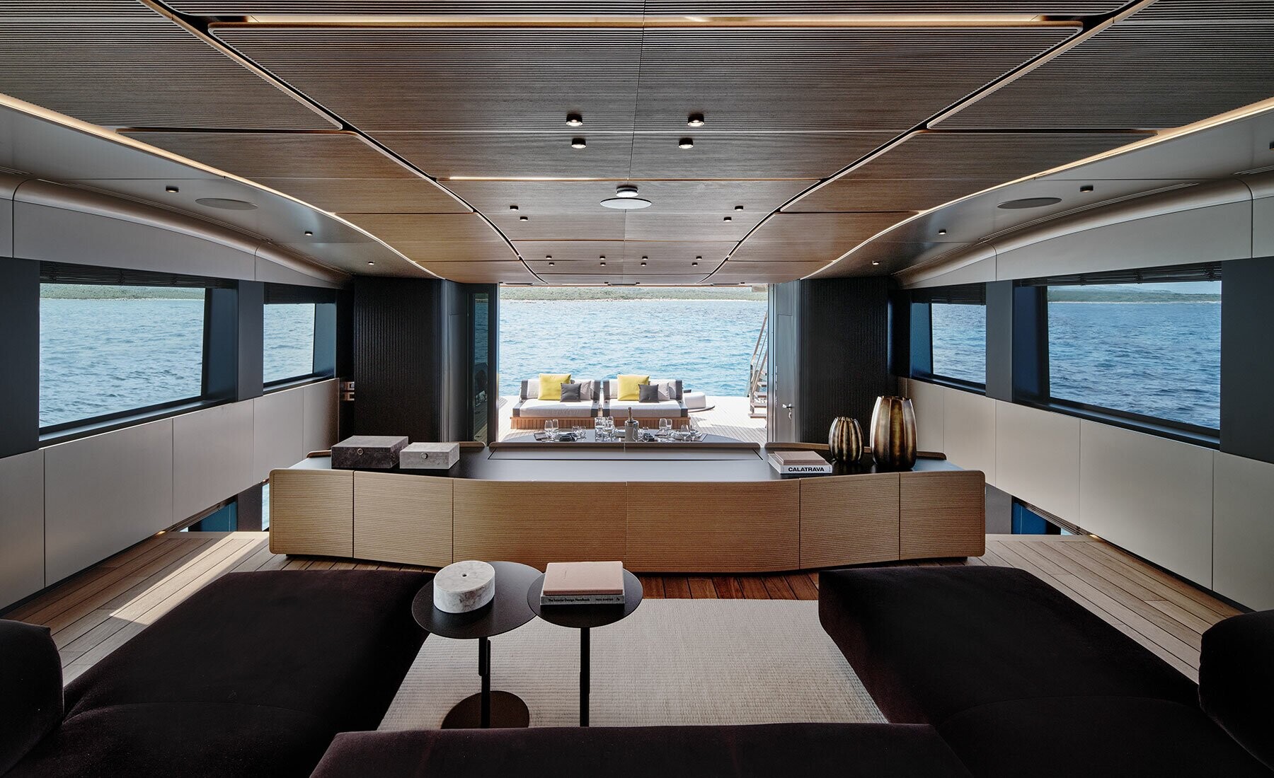 wallywhy150's nieuwste product van de permanent Wally+Ferretti-groep, wallywhy150, is tot stand gekomen in samenwerking met Studio Vallicelli-ontwerp, waar ze het interieur verzorgden, staat voor harmonie tussen luxe en functionaliteit. Het jacht beschikt over indrukwekkende buitenruimtes die ongeëvenaard zijn voor een schip van deze omvang. Haar bijna volledig open bovendek stelt eigenaren en gasten in staat om te zonnebaden, te genieten van het perfecte dinerarrangement of zich gewoon te verliezen in het bewonderen van het panoramische uitzicht op zee.