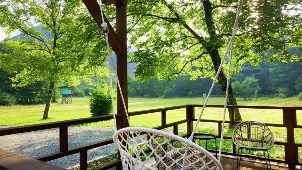 Net achter de Sloveense grens staat een houten huis op een idyllische locatie. Het ligt tussen twee rivieren, ver weg van lawaai en nederzettingen, waar u rustig kunt luisteren naar de geluiden van de natuur of bosdieren kunt observeren. De leefruimte bestaat uit een goed uitgeruste keuken en een woonkamer, en in het meer intieme gedeelte bevinden zich twee slaapkamers met tweepersoonsbedden.