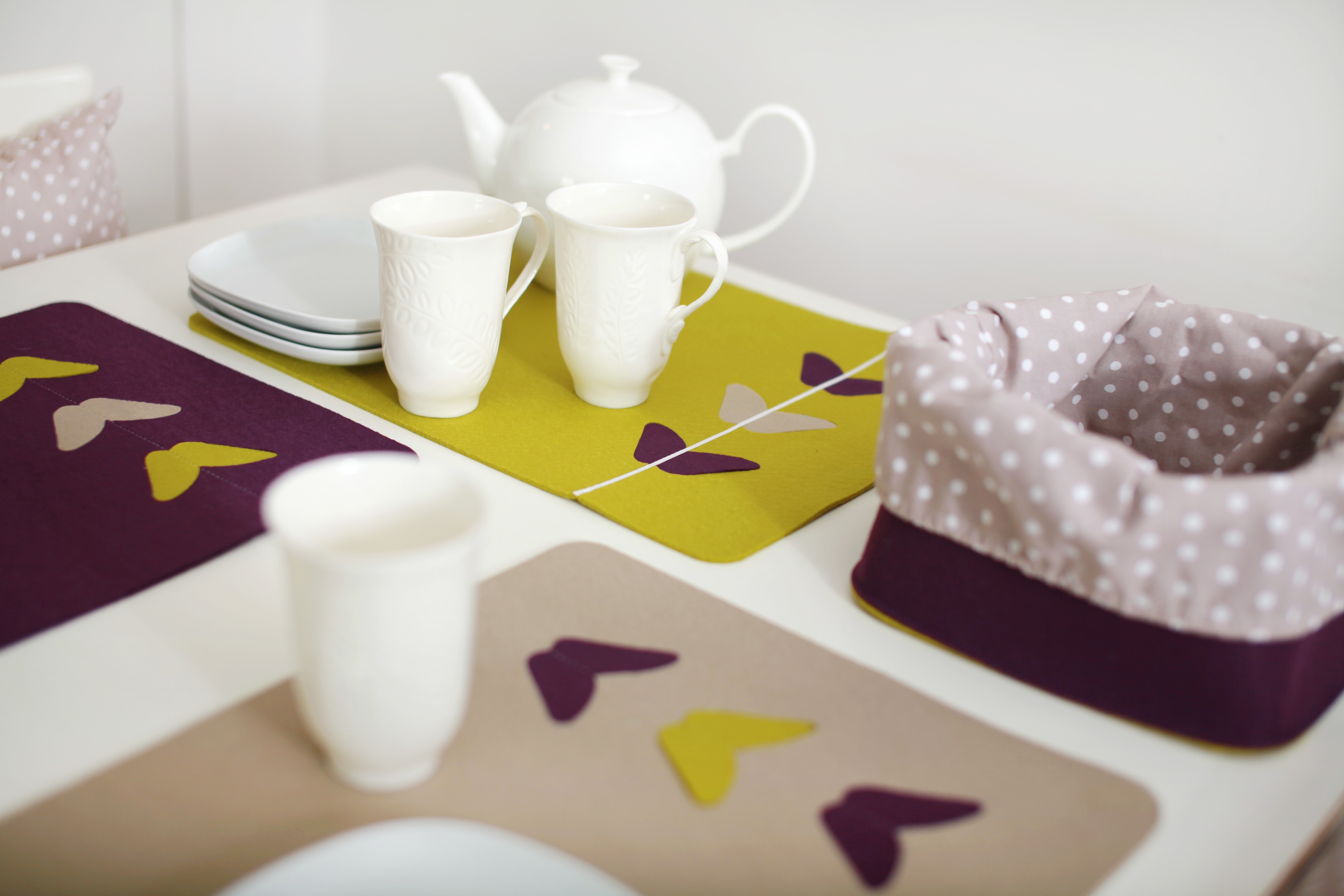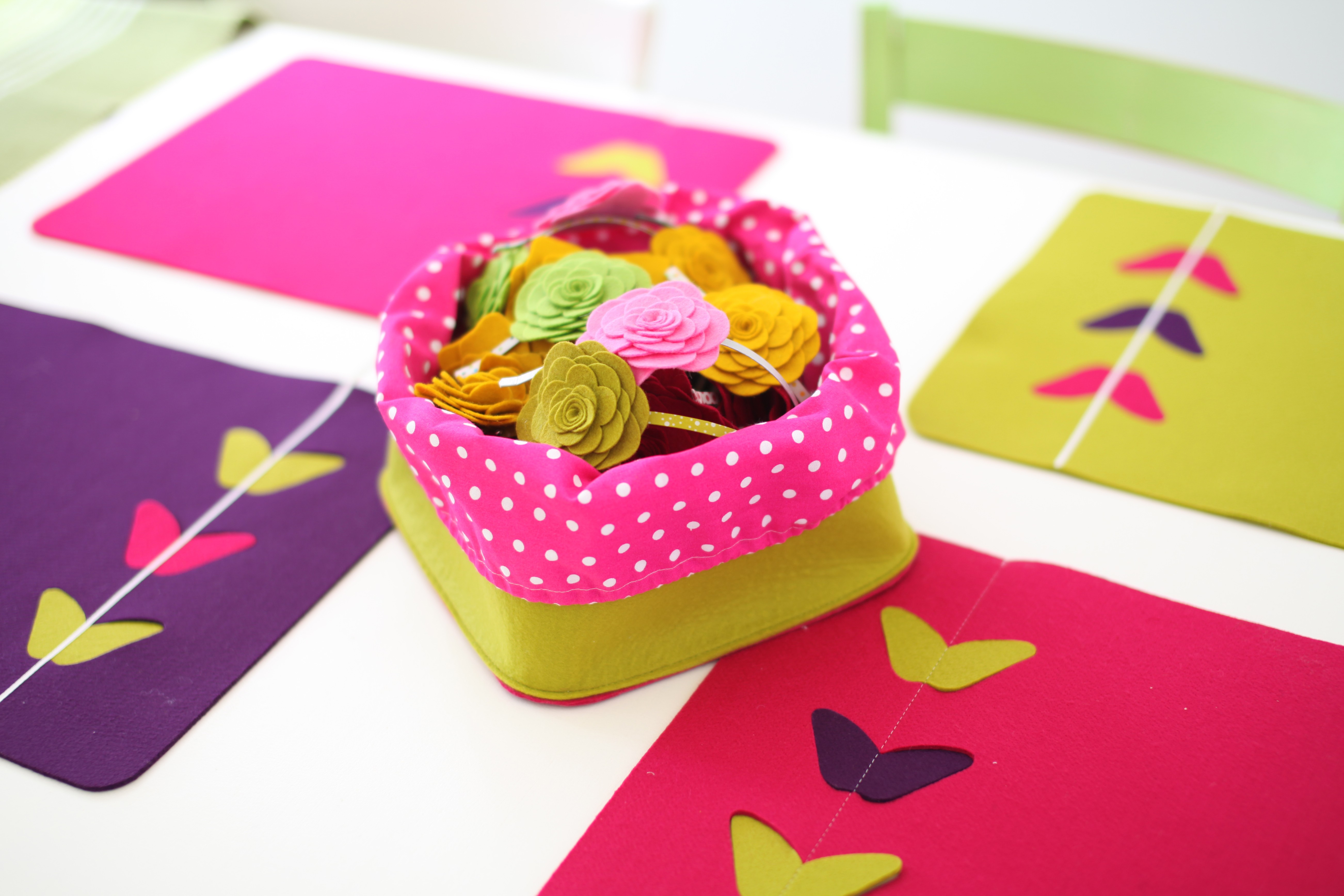 Plod sodelovanja Odeje in Ursanine je nova kolekcija igrivih izdelkov za dom iz filca in bombaža: košar za shranjevanje, koškov za kruh, pogrinjkov in torbic, ki vnesejo v prostor pomladno energijo. Mehkoba filca s pisanimi barvami ter všiti dodatki v grafičnih in organskih oblikah namigujejo na igrivost, sproščenost, dobrovoljnost. Motivi tulipanov, metuljčkov, brkov in pikic se razposajeno podijo po jedilni mizi, po policah, po kopalnici ali otroški sobi. Vsem pa je skupen pomladni motiv.