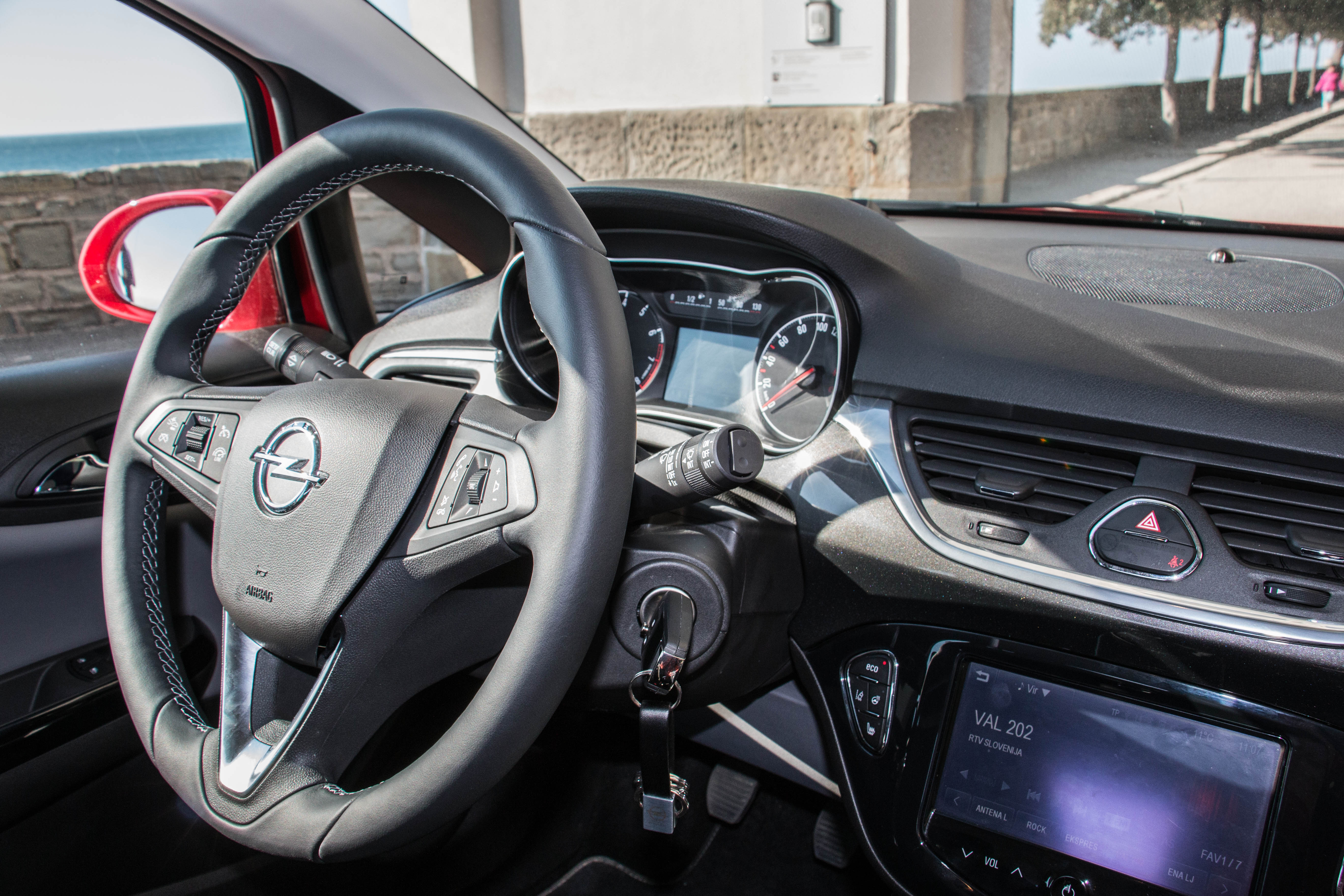 V potniški kabini navduši kakovost izdelave in izbira dosti boljših materialov kot v predhodnici. Seveda je svežina opazna tudi pri oblikovanju, kjer je Corsa podedovala veliko oblikovnih detajlov armaturne plošče iz manjšega Opla Adama. Le ta je očiščena množice gumbov, ki jih deloma nadomešča ekran na dotik – središče sistema IntelliLink. Ta omogoča sodobno in odlično povezljivost s pametnemi telefoni ter povezljivostjo z internetom, kjer je na voljo kar nekaj aplikacij. Sistem je simpatičen in nezapleten, zato ga lahko le pohvalimo.