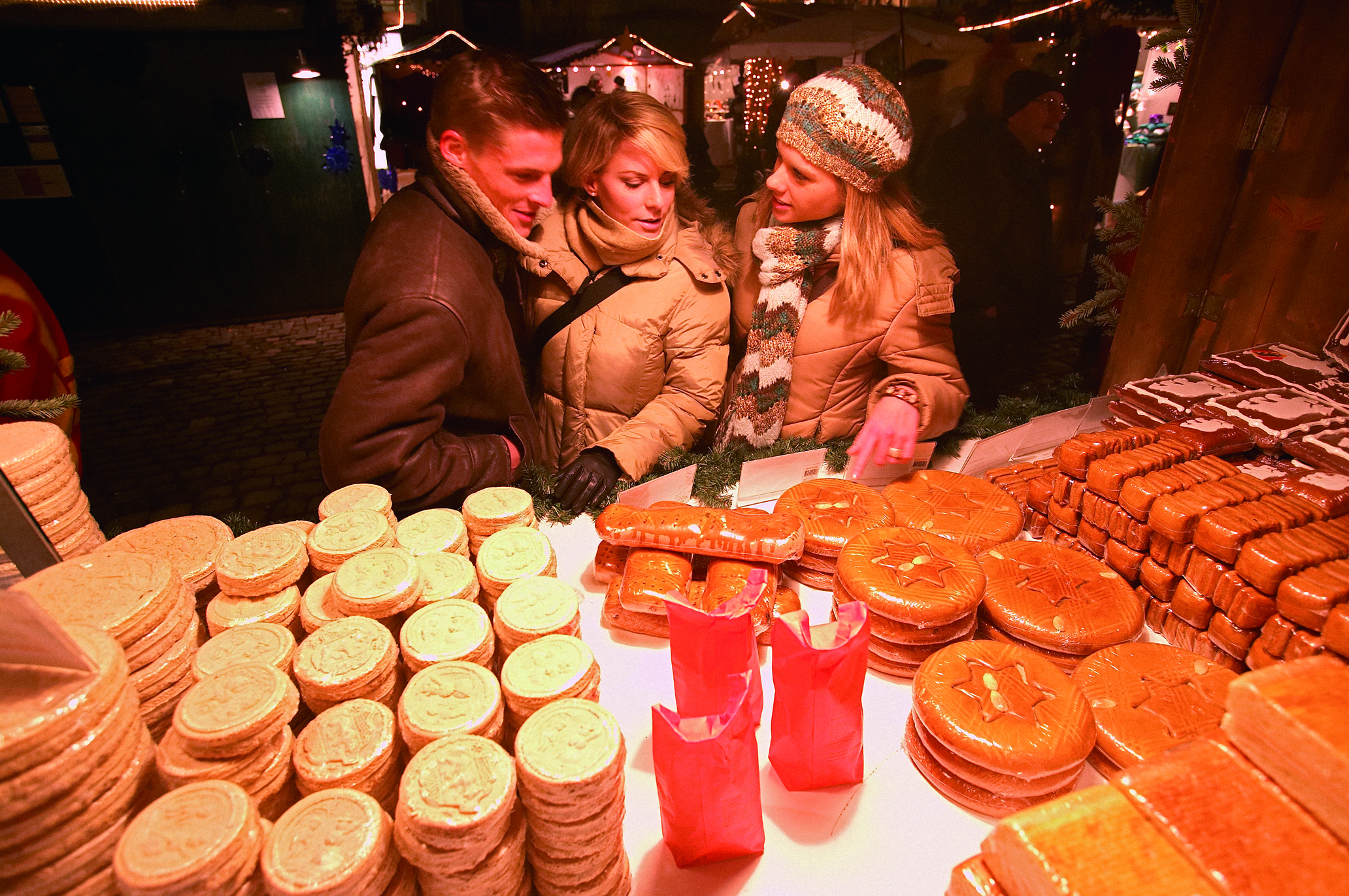 Ozračje na trgu Münsterplatz je umirjeno, stojnice, ki se vrstijo skoraj do portala katedrale z upodobitvijo zadnje sodbe, pa ponujajo tipične rokodelske izdelke, dišeče pecivo, pripomočke za peko in umetniško ustvarjanje, nakit in družabne igre. Vsi izdelki imajo skupno točko: narejeni so z ljubeznijo, švicarsko natančnostjo in domišljijo. Le nekaj minut od božičnega sejma pred katedralo se nahaja drugi sejem na trgu Waisenhausplatz in okoliških ozkih uličicah. Tukaj nas na čudovito okrašenih stojnicah, od katerih se vije vonj po medenjakih, karameli in kuhanem vinu, čaka še večja izbira božičnih in novoletnih izdelkov. Odpočijemo si lahko v restavraciji Märitbeizli na tržnici ali se le pogrejemo s toplo pijačo, da bomo lahko nadaljevali pohajkovanje po praznično okrašenih ulicah ali pod arkadami, ki jih domačini imenujejo Lauben.