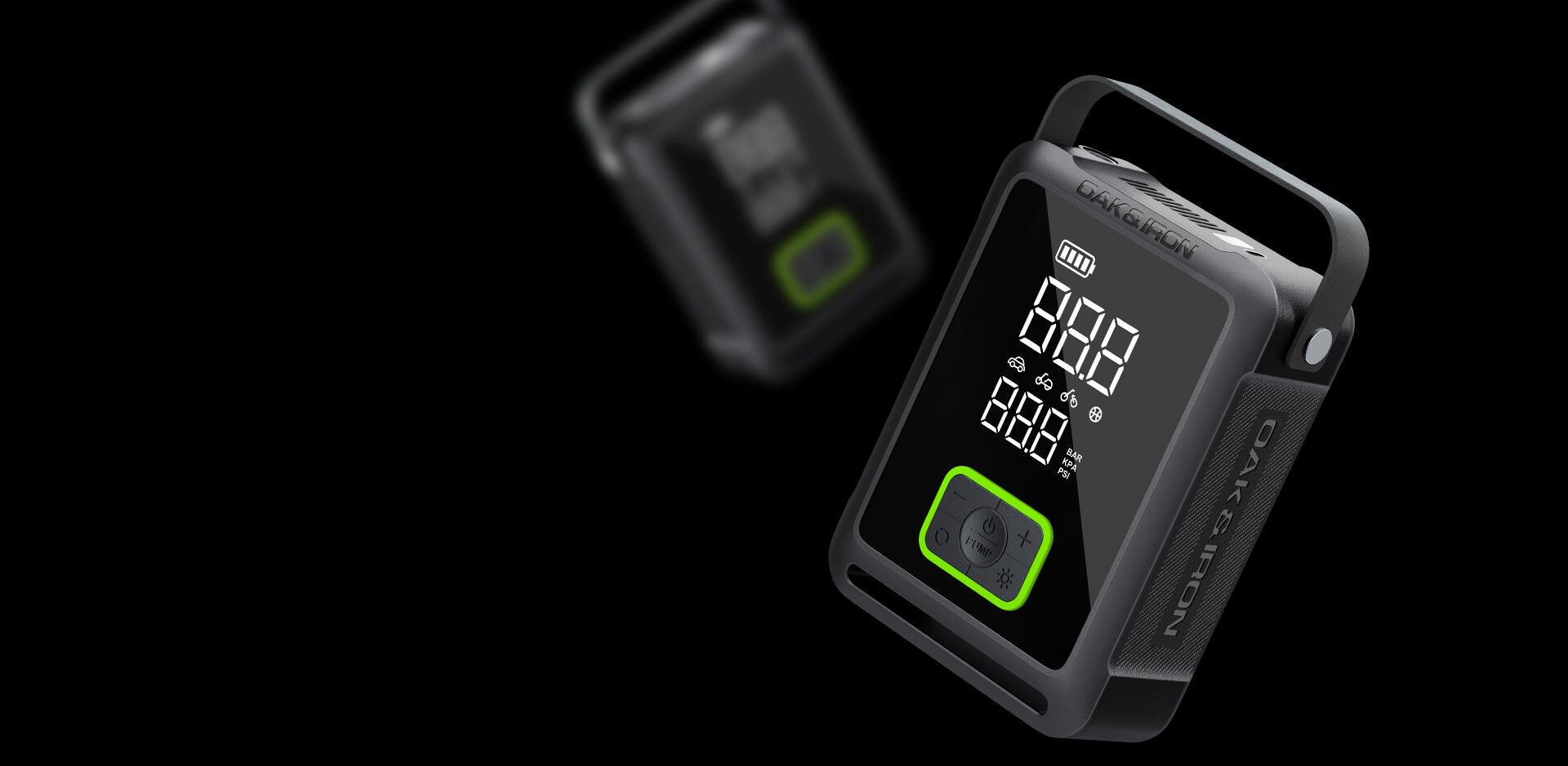Oak & Iron One Pro se lahko pohvali z veliko baterijo s kapaciteto 10.400 mAh, ki je lahko kar 400 dni v pripravljenosti. Kompaktna in robustna zunanjost ima zaslon LCD, preko katerega lahko upravljamo z enostavnim in preglednim menijem. Preko zaslona lahko odčitamo natančno stanje pritiska v pnevmatiki. Standardna pnevmatika dimenzij 225/60 R18 se lahko od popolnoma prazne, napolni do 2,4 bara v manj kot treh minutah (pri napolnjenosti naprave med 80-100% potrebujemo za polnjenje le 50 sekund). One Pro ima vgrajeno močno svetilko LED s funkcijo oddajanja signala SOS in izhod USB-C za polnjenje elektronskih naprav. One Pro lahko seveda uporabljamo za terenska vozila, avtomobile, motorna kolesa, kolesa in tudi za žoge, ter ostale napihljive stvari.