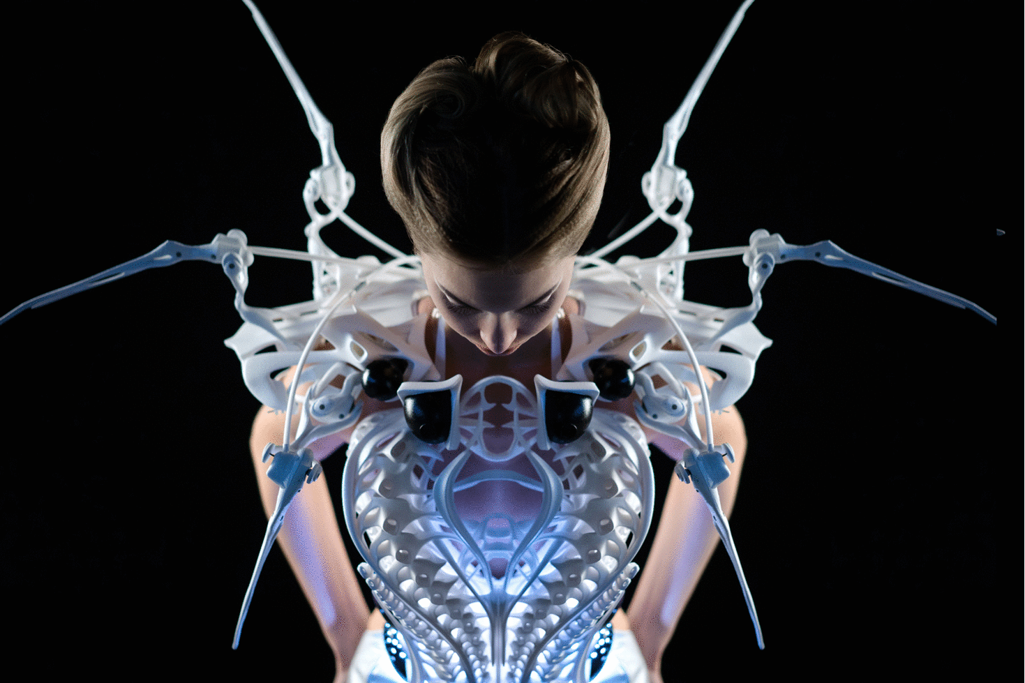Če želite vsiljivce prestrašiti do te mere, da se vam ne bodo upali več približati na več kot meter, vam predlagamo, da si omislite obleko modno-tehnološke oblikovalke Anouk Wipprecht, visokotehnološko modno kreacijo iz najlona, ki uporablja Intelovo tehnologijo.