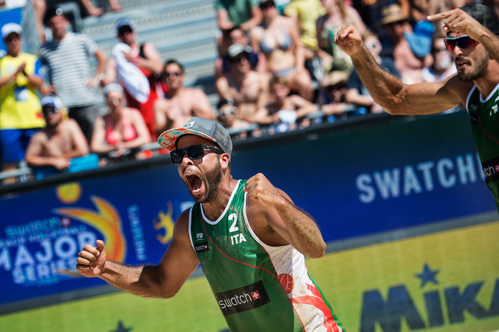 Adrian žogo pošlje naravnost med oblake! Droni in ptiči pozor! Ne približujte se igrišču za odbojko na mivki, ko servira ta Italijan, saj zna biti to za vas pogubno! Žoga za odbojko nato praktično pod navpičnim kotom pade na nasprotnikovo stran ter ga na ta način vrže iz ritma in dezorientira, zato predstavlja prednost zanj in njegovega soigralca Alexa Ranghierija.