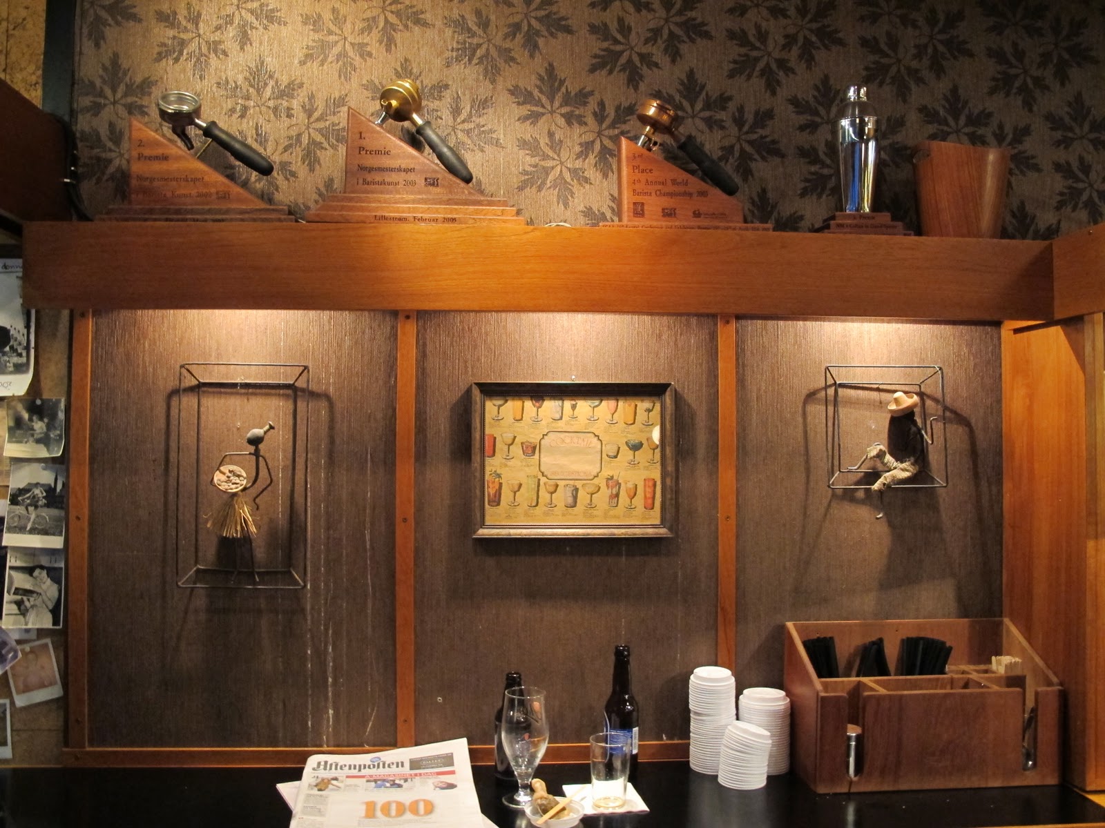 Fuglen je pravi naslov za ljubitelje oblikovanja in dobre kave. Kavarna se na istem naslovu nahaja že vse od leta 1963, kar sta lastnika spoštovala, saj je obisk kavarne korak nazaj v času. Originalna notranjost poudarja skandinavsko oblikovanje petdesetih in šestdesetih let prejšnjega stoletja. Eden od lastnikov Einar Kleppe Holthe je pred leti zmagal na norveškem tekmovanju baristov (pripravljavcev kavnih napitkov), drugi, Peppe Trulsen pa je oblikovalec. Pri ptiču (fuglen je norveška beseda za ptiča) pa ni retro le notranja oprema, pravzaprav vse lokal diha s časom, v katerem je opremljen. Nikomur se ne mudi, napitki se pripravljajo sveži in nihče nas ne bo priganjal, da svojo kavo odnesemo v plastičnem kozarčku ali da hitro spraznimo mizo. Kava je izredne kvalitete, kupujejo jo le od norveških Fair trade proizvajalcev, izbiramo pa lahko ne le med vrstami kave, ampak tudi načini priprave, kar pomeni, da nam bodo z veseljem pripravili tudi dobro turško kavo, ki jo je dandanes tako težko naročiti.