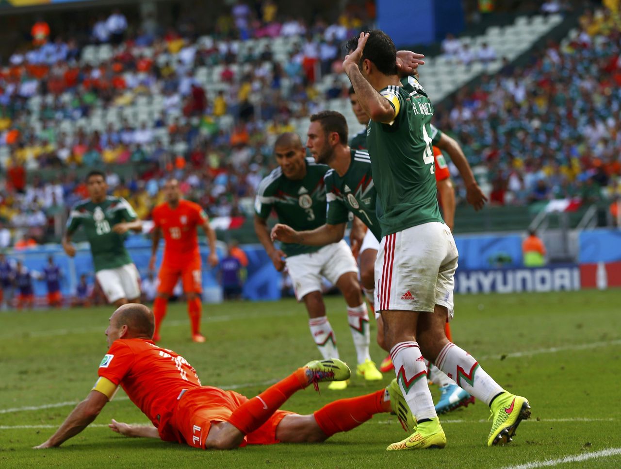 Prawdopodobnie wszyscy mamy już dość baletowych popisów Robbena i jego żałosnych symulacji. Publiczność dała mu to jasno do zrozumienia w meczu z Kostaryką, gdzie wygwizdywała go za każdym razem, gdy dotykał piłki. Chociaż wiele fauli było słusznie wygwizdywanych, swoją reputacją symulatora zasłużył sobie na te niesłuszne potępienia i będzie musiał znieść jeszcze wiele „prawdziwych” fauli, aby odzyskać zaufanie kibiców. Ale tylko do następnego udawania, kiedy syzyfowa droga do szczerości upadku lub bólu rozpocznie się od nowa. Doskonałym przykładem był mecz z Meksykiem, w którym wywalczył słusznie przyznany rzut karny, ale jednocześnie przyznał, że popełnił go w polu karnym kilka fauli wcześniej.