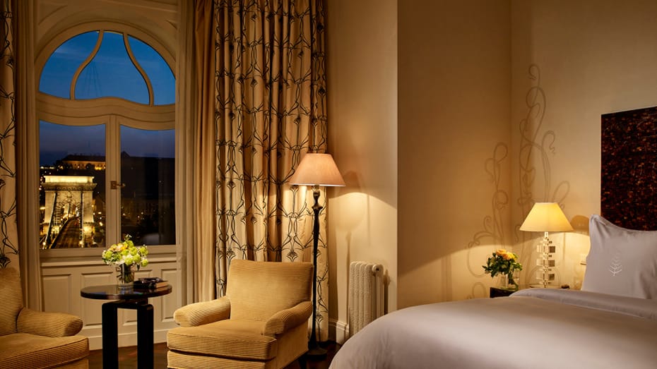 Z mozaikową podłogą z 2000 elementów, XIX-wiecznym szklanym dachem i misternymi kutymi elementami, ten budapeszteński hotel to prawdziwe arcydzieło secesji. Hol z mauretańską szklaną kopułą i lśniącymi szklanymi żyrandolami sam w sobie jest dziełem sztuki. Pokoje są przestronne i luksusowo urządzone, ze sklepionymi sufitami i marmurowymi łazienkami. Wiele z nich posiada również prywatne balkony z widokiem na Dunaj lub Zamek Królewski w Budapeszcie.