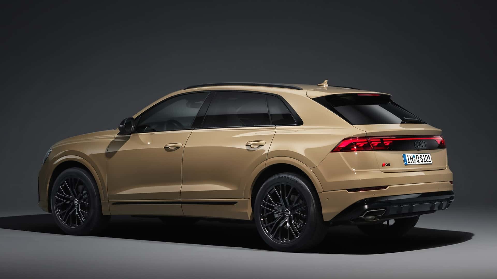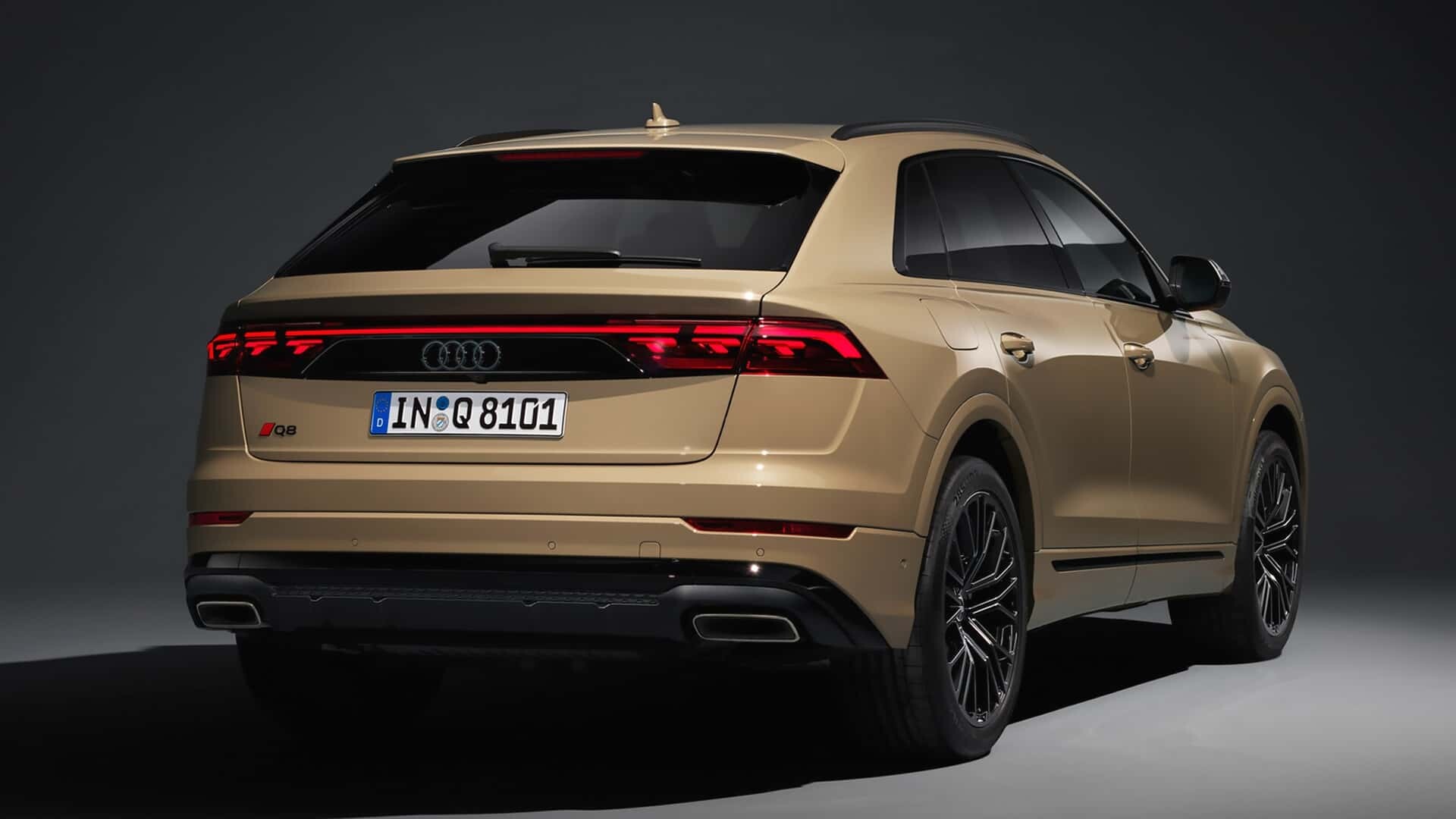 Z tyłu Audi wprowadza technologię OLED w tylnych światłach, które naśladują model A8 i mniejszy crossover Q5. Światła te oferują nie tylko zwykłe sekwencje przyjazdów i odjazdów, ale także funkcję bezpieczeństwa. Gdy samochód zbliży się na mniej niż 2 metry (6,6 stopy) do nieruchomego Q8, wszystkie elementy OLED zostaną automatycznie aktywowane.