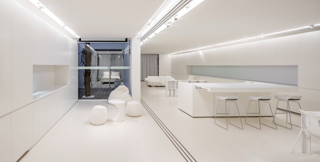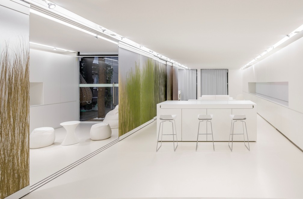 Architekci zespoły Architektura przeszli samych siebie tym projektem mieszkania przyszłości, także ze względu na doskonały wybór monochromatyczny styl minimalistycznego wnętrza i wiele elementy obrazy natury w zamkniętej przestrzeni, które na ruchomych panelach ściennych zachowują się kolorowo wielowymiarowe kolaże. Całość apartamentu uzupełnia zaawansowany system świetlno-nagłośnieniowy, którym z naszą pomocą można sterować Aplikacje Do urządzenia mobilne. Elastyczność przestrzeni przekłada się także na wielofunkcyjność mieszkania przyszłości, które można uznać za swego rodzaju hybrydę pomiędzy blokiem, przestrzenią wystawienniczą, pokojem hotelowym, galerią sztuki, a nawet laboratorium.