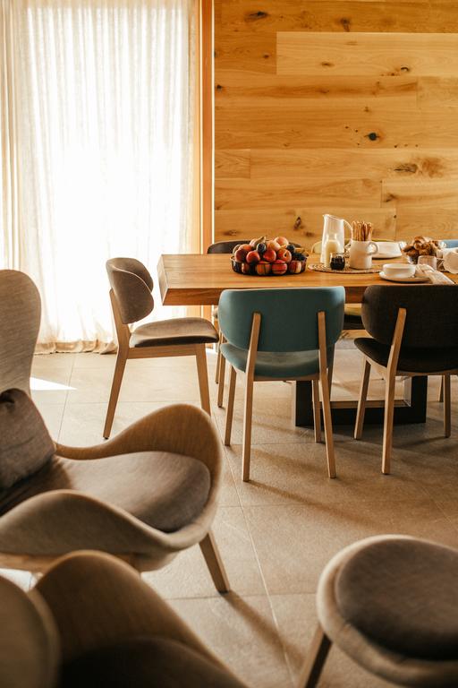 Eleganckie domki z bali urządzone są w nowoczesnym, minimalistycznym stylu. Są one wyposażone w panoramiczne okna sięgające od podłogi do sufitu, przez które można podziwiać piękny krajobraz okolicy. Domki z bali dysponują umeblowanym tarasem oraz w pełni wyposażonym aneksem kuchennym. Dostępne są również kuchenka mikrofalowa, lodówka i sprzęt do parzenia kawy. z herbaty. Goście mogą również korzystać ze wspólnej kuchni, w której serwowane są bezpłatne lokalne sery, jogurty i salami.